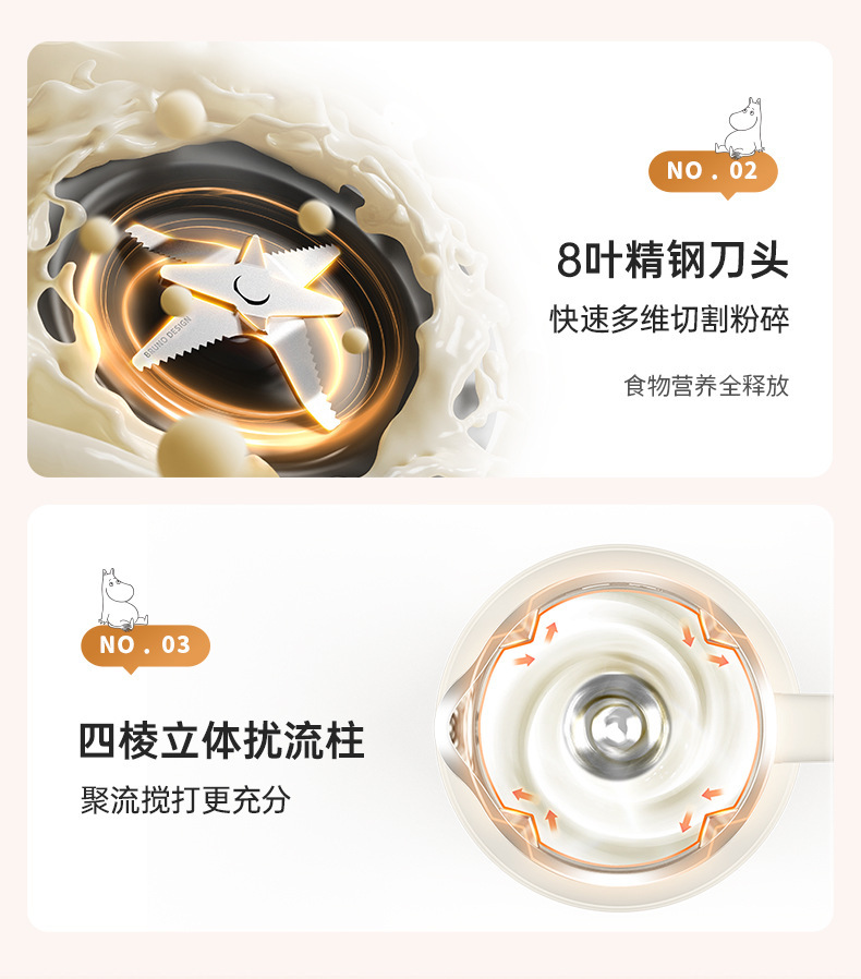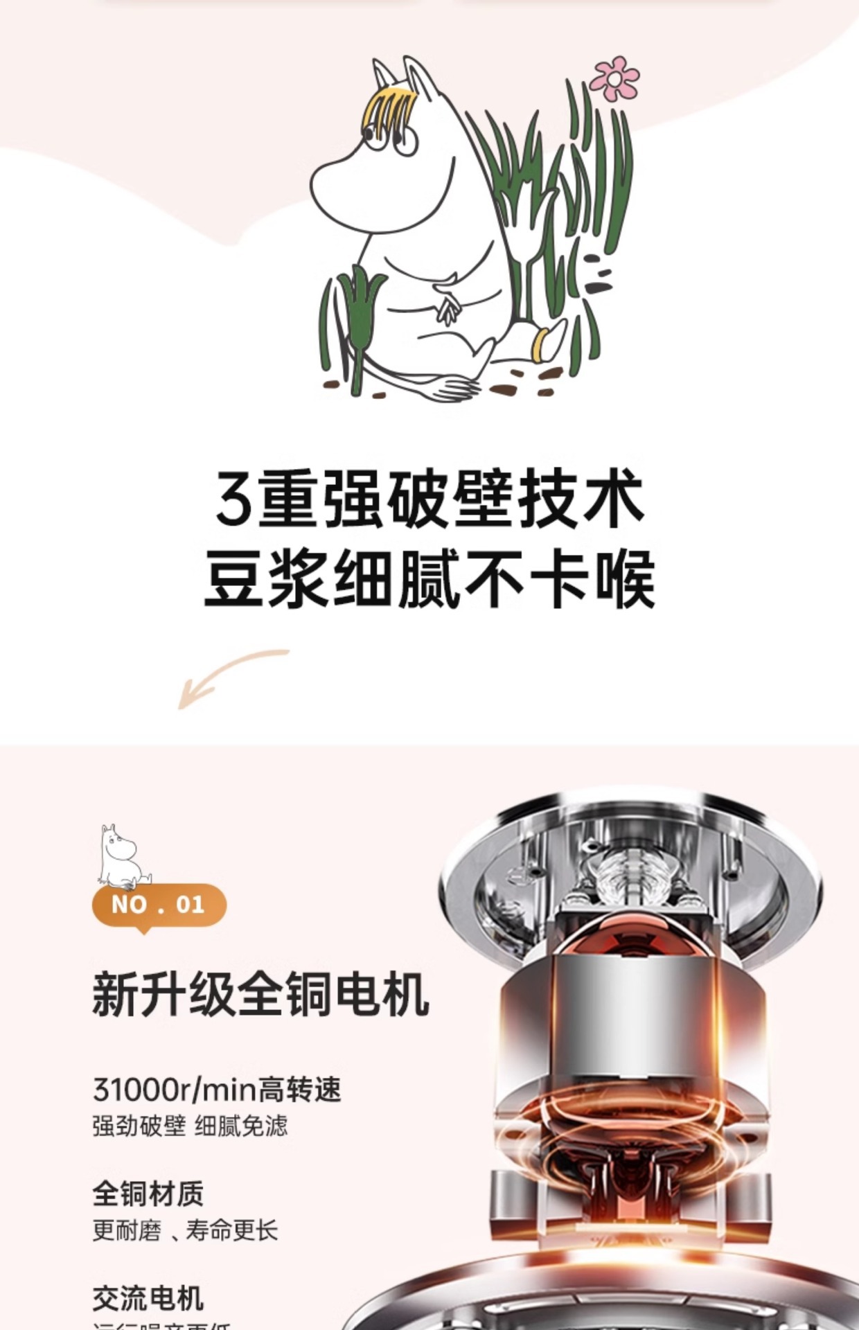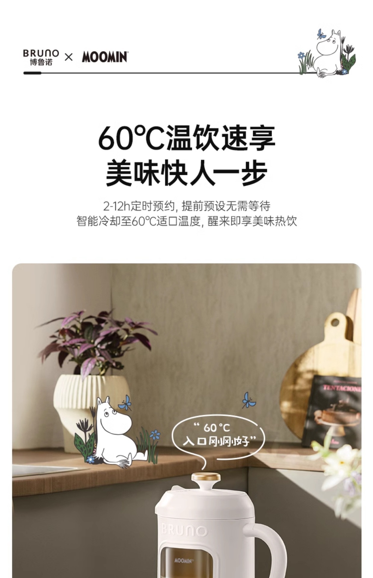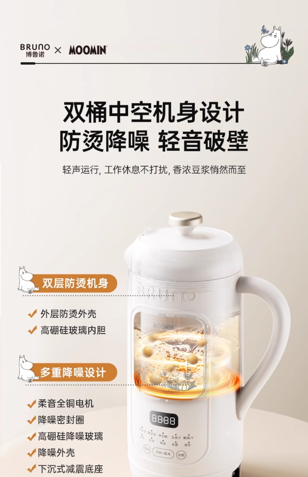BRUNO 벽 파괴 기계 가정용 소형 시각적 두유 기계 완전 자동 저소음 잔류물없는 미니 공식 Moomin IP