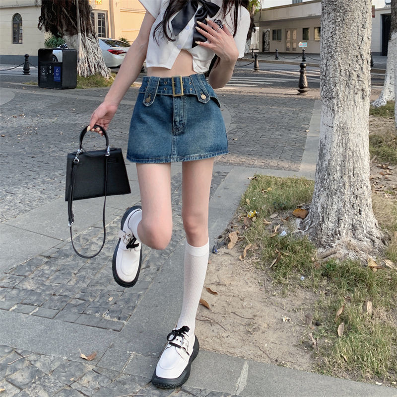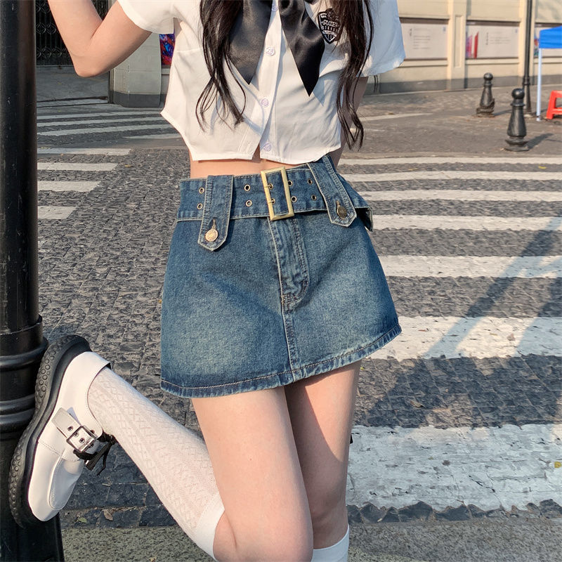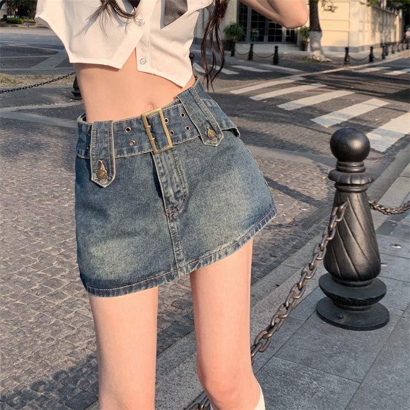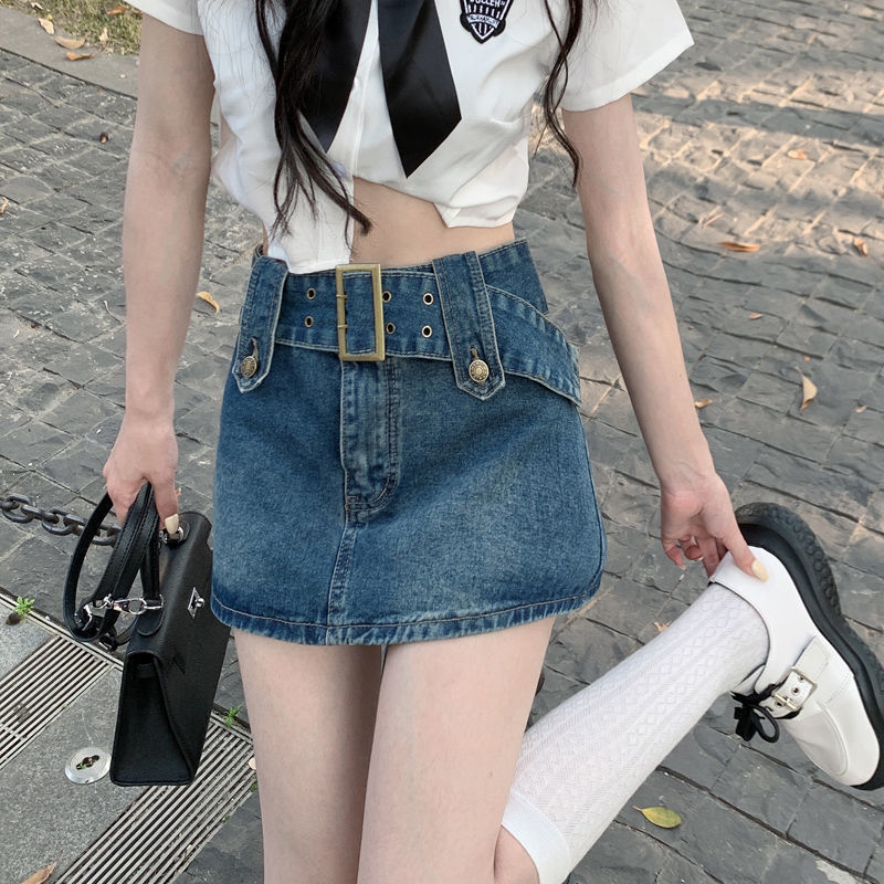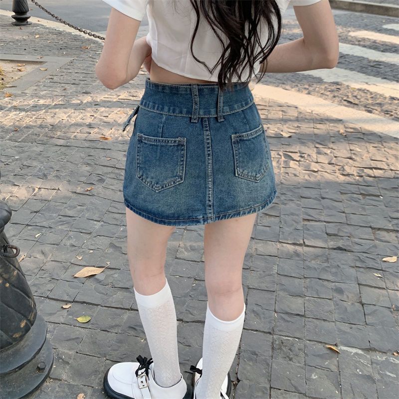 여성용 데님 스커트 2023 여름 신작 하이 웨이스트 핫 걸 미니 스커트 힙 커버 스커트 노출 방지 바지 스커트스토어 가기