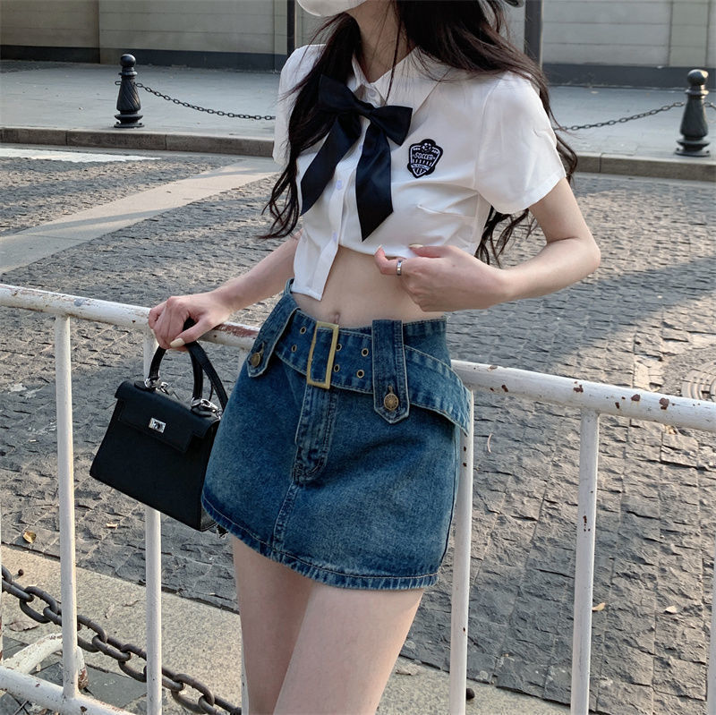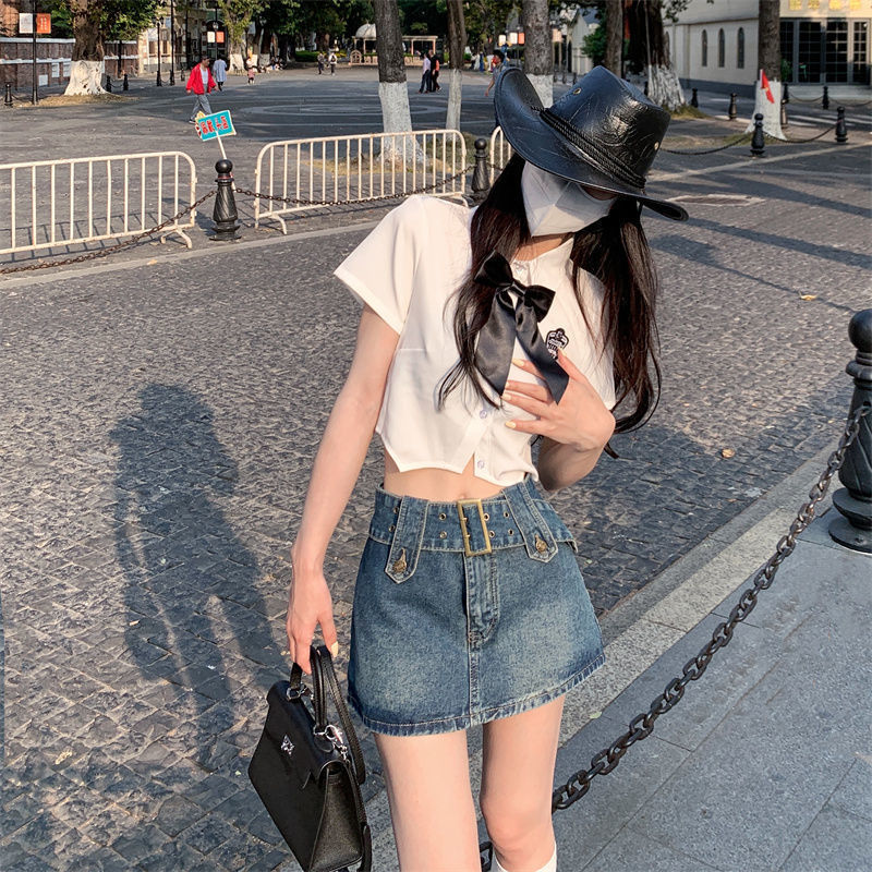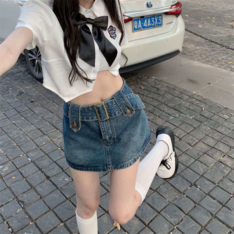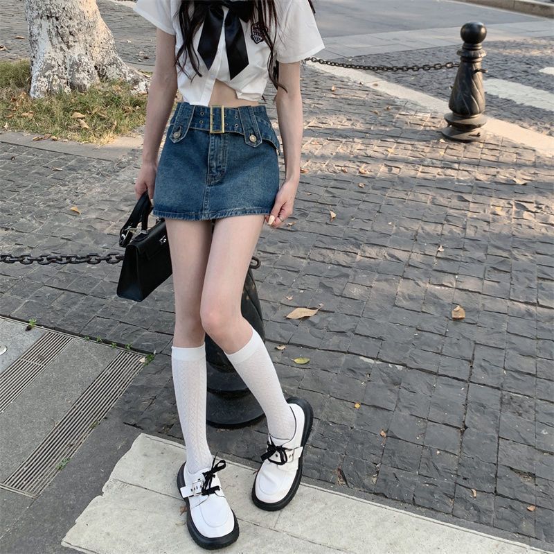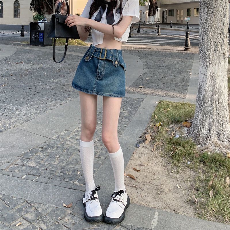 여성용 데님 스커트 2023 여름 신작 하이 웨이스트 핫 걸 미니 스커트 힙 커버 스커트 노출 방지 바지 스커트스토어 가기