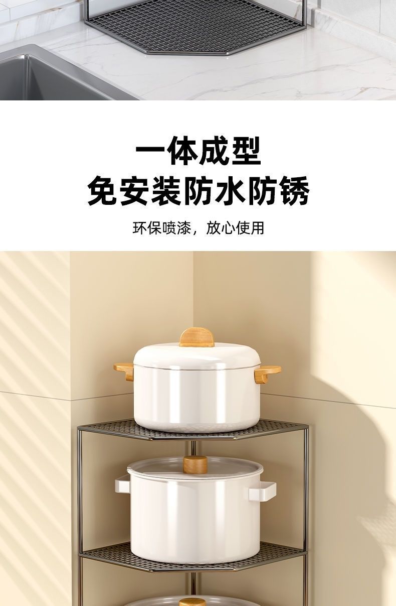 주방 냄비 랙, 삼각형 냄비 랙, 냄비 보관함, 싱크대 아래 코너 바닥 조리대, 가정용 다층 보관함스토어 가기