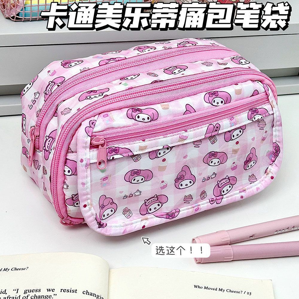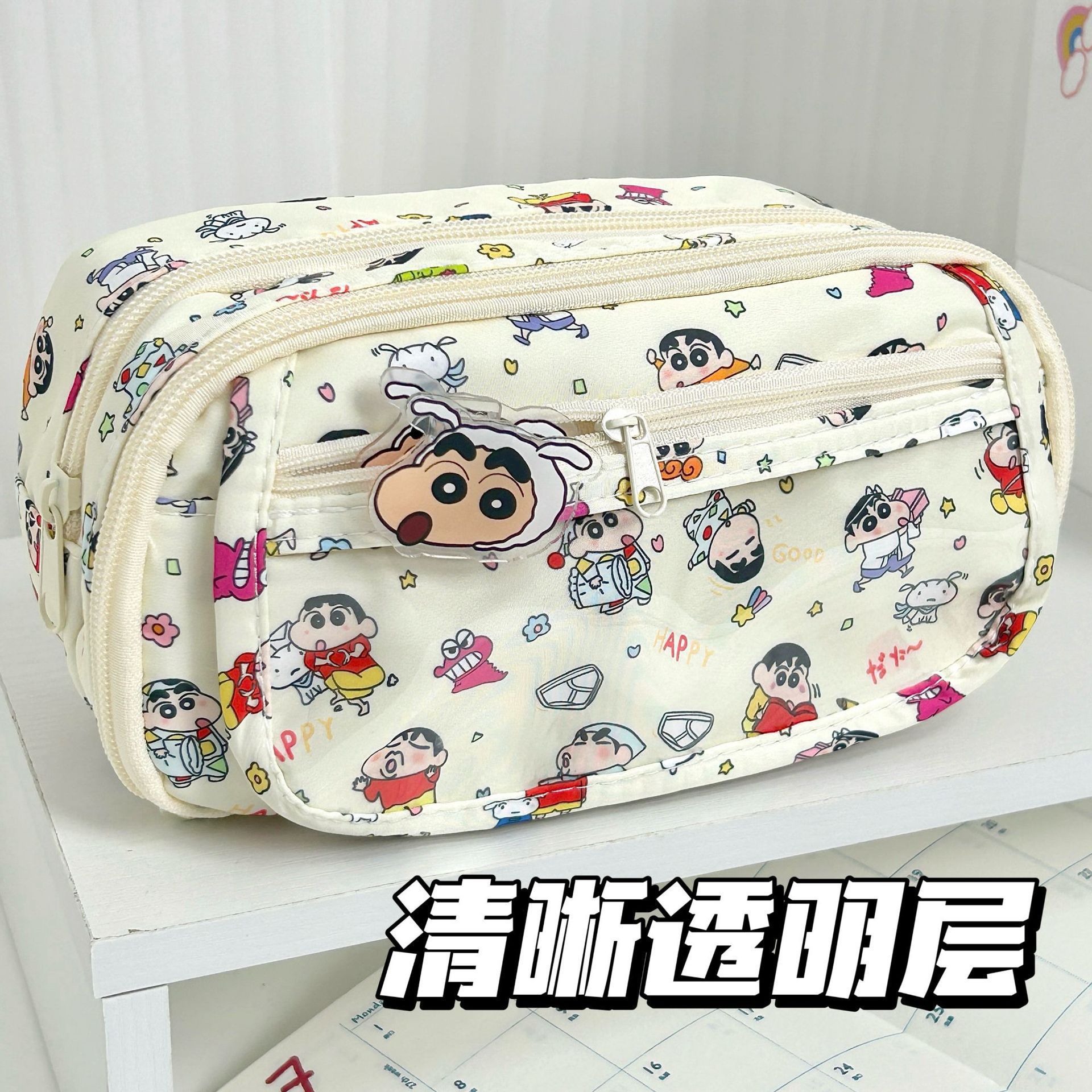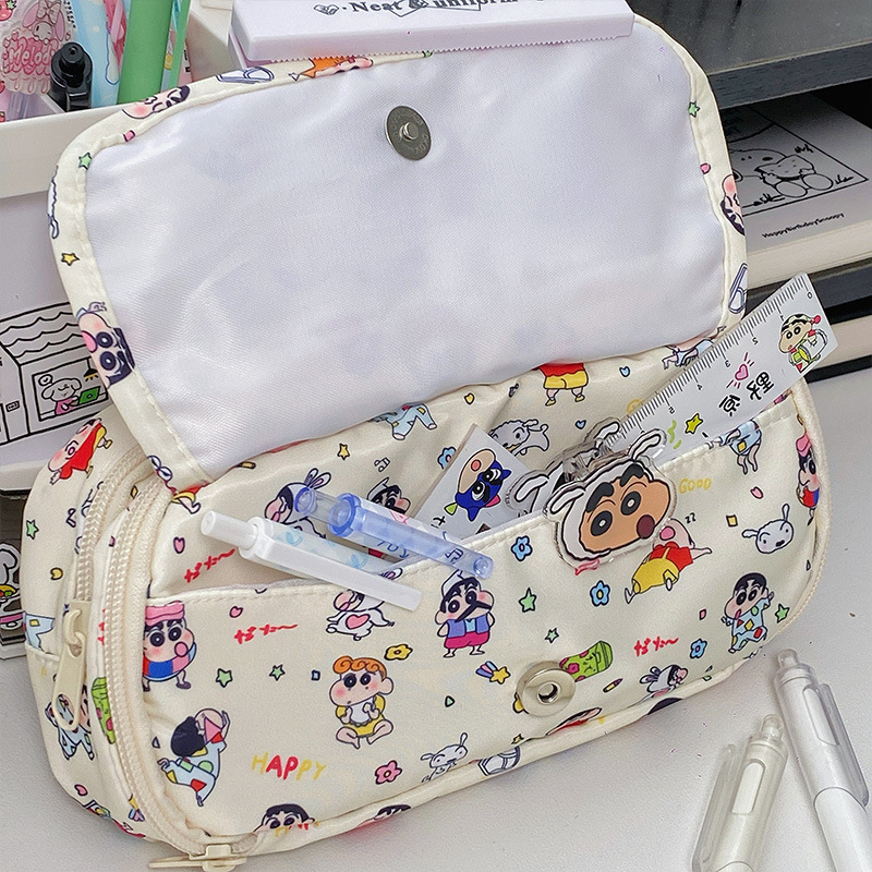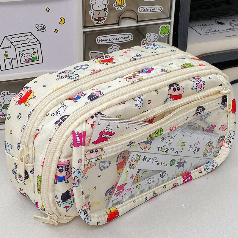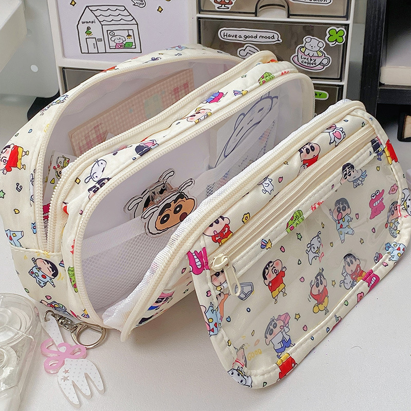 귀여운 크레용신짱 통가방, 고급스러운 연필가방, 학생용 다층 대용량 문구가방, 메이크업 수납