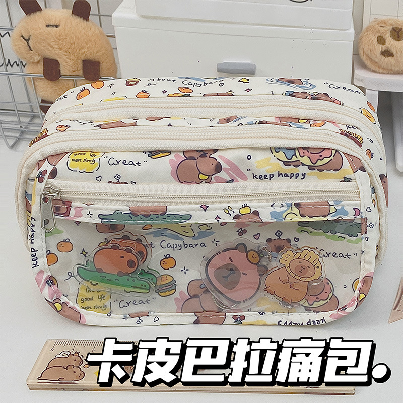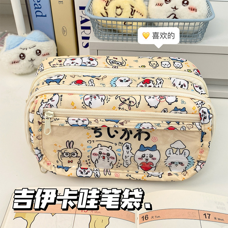 귀여운 크레용신짱 통가방, 고급스러운 연필가방, 학생용 다층 대용량 문구가방, 메이크업 수납스토어 가기