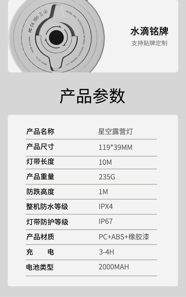 • 태양광 10m (완전히 따뜻함) 2000mah