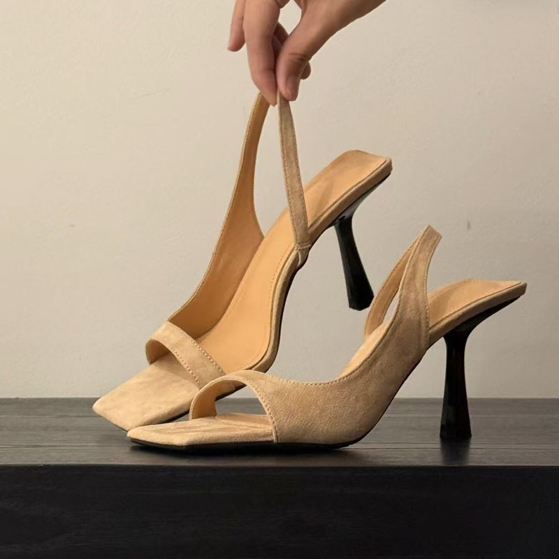 여성용 스퀘어 토 오픈 토 샌들, 여름 프렌치 스타일, 스커트, 스틸레토 힐, 뒷면이 빈 검은색 하이힐스토어 가기