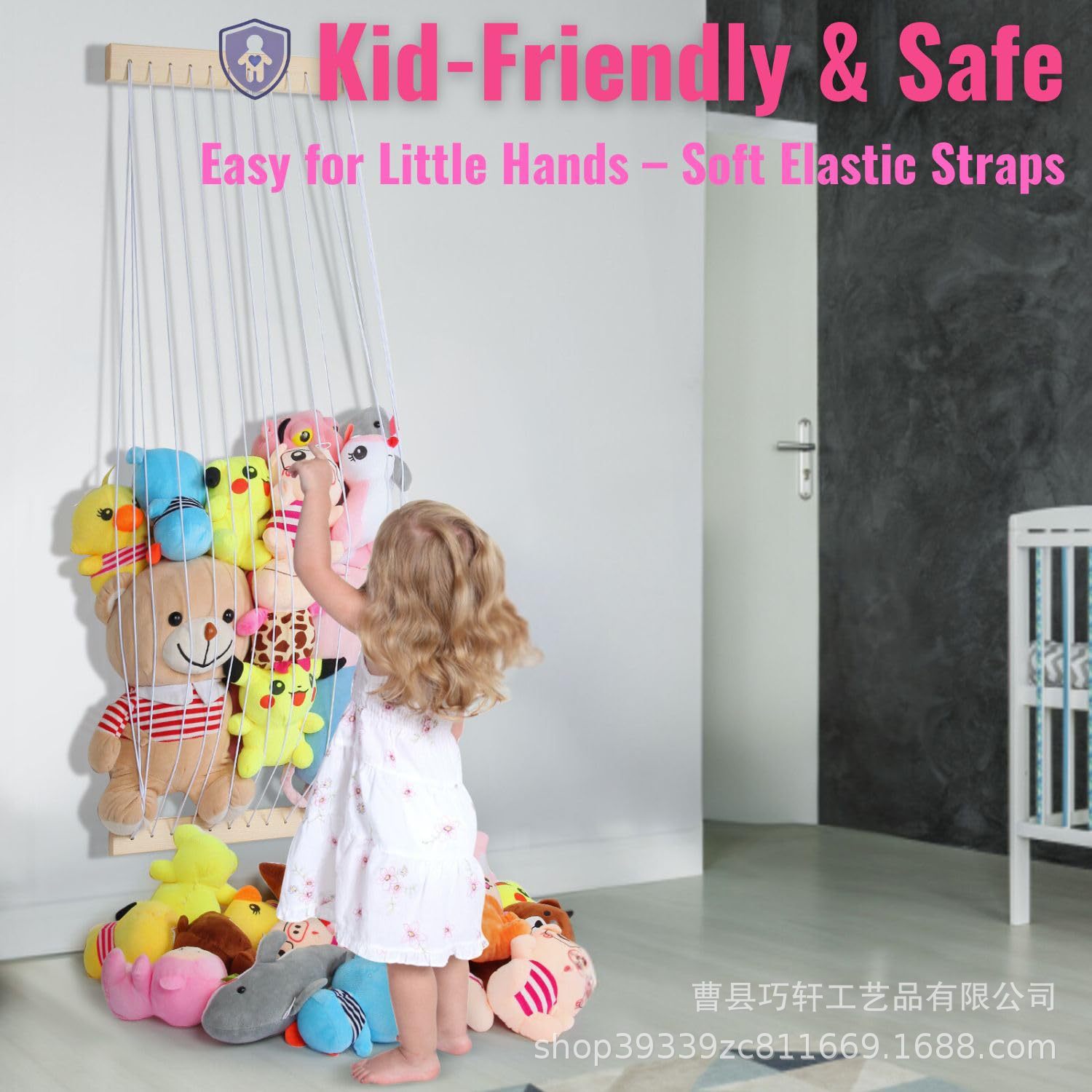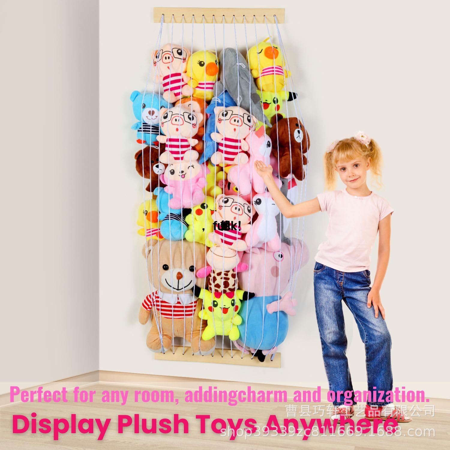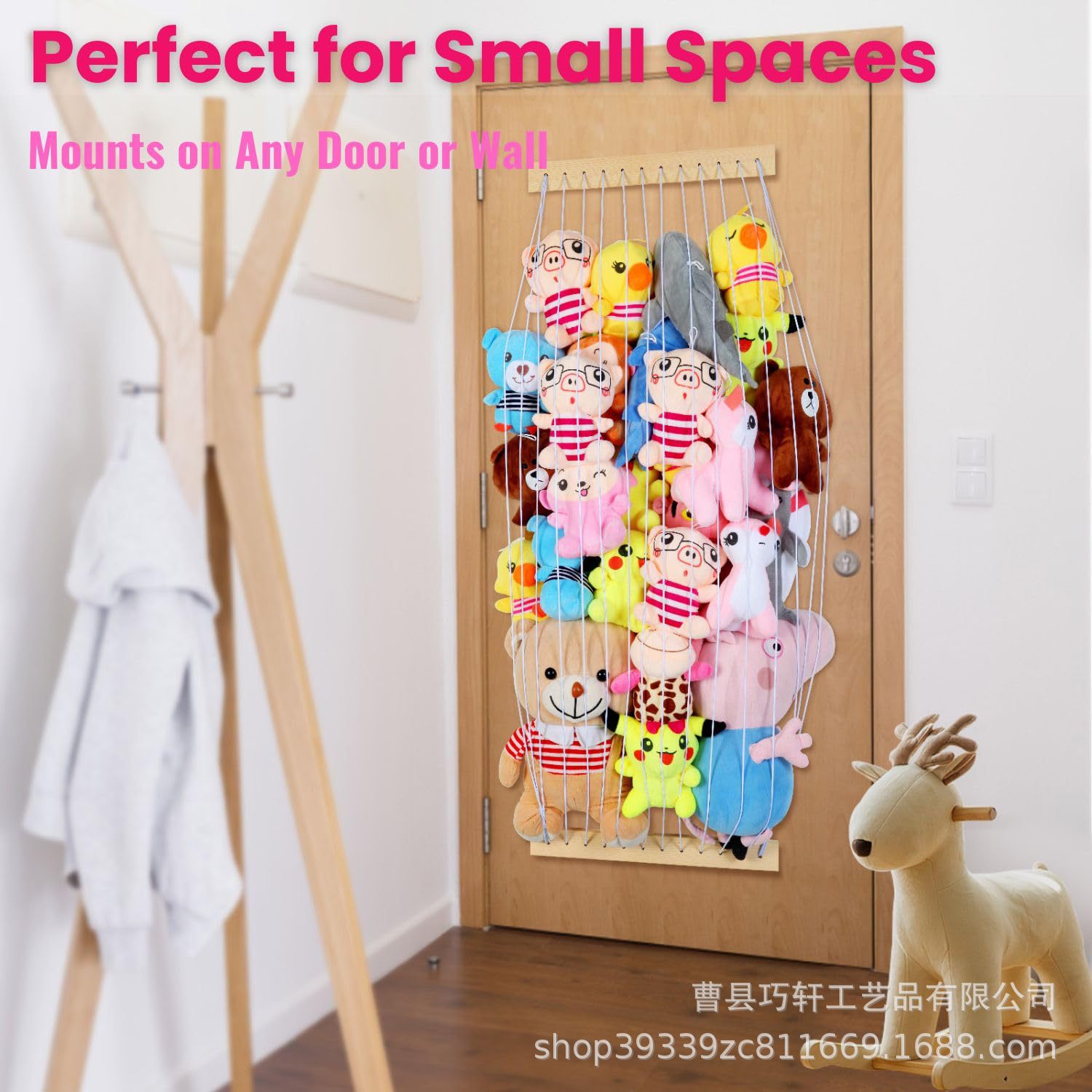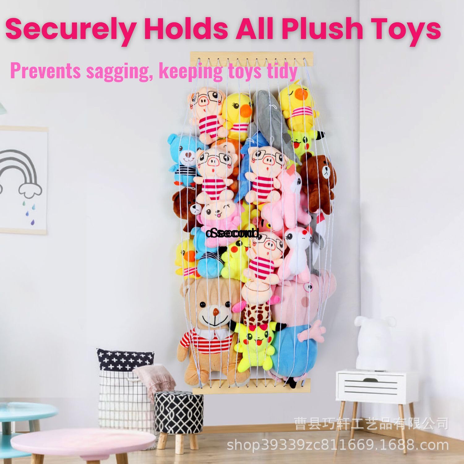 나무 장난감 보관 랙 벽걸이 형 벽 장식 장난감 인형 탄성 로프 거실 침실 장난감 장식품 랙스토어 가기
