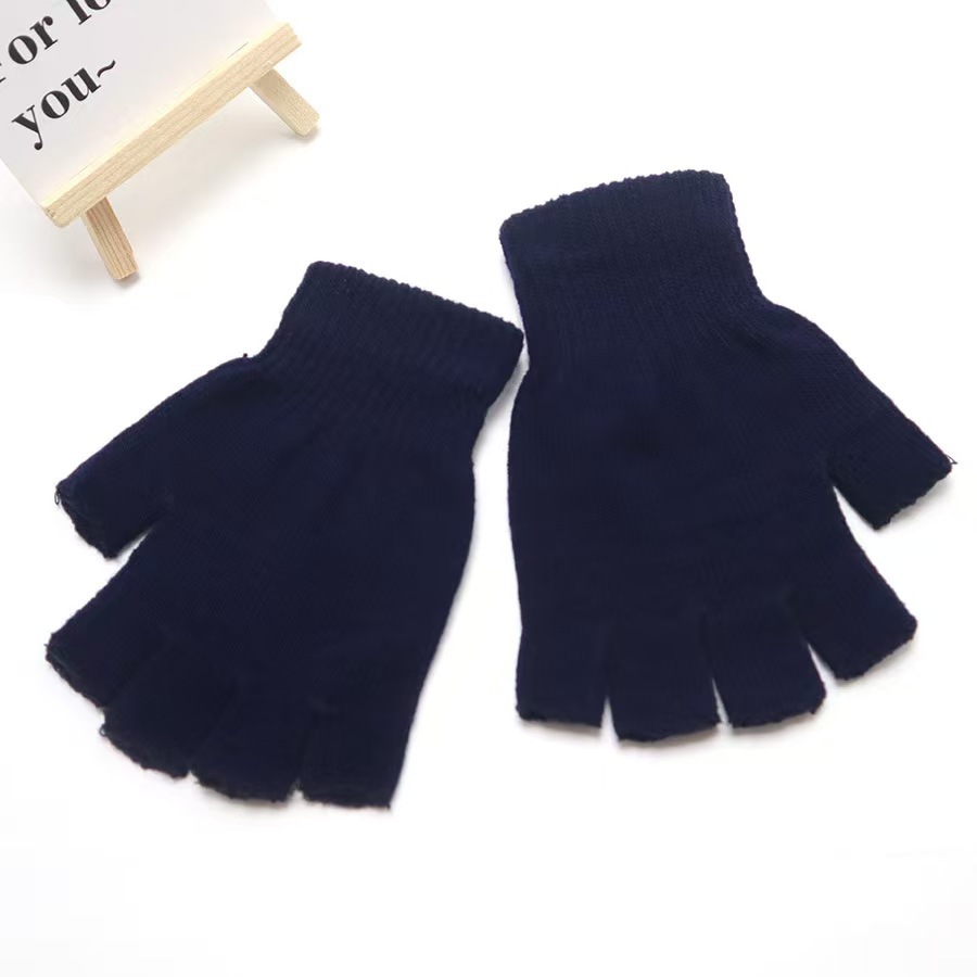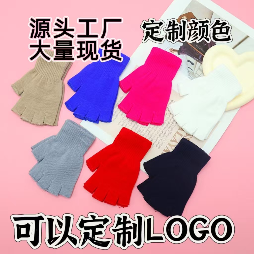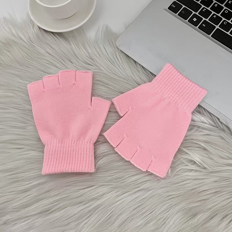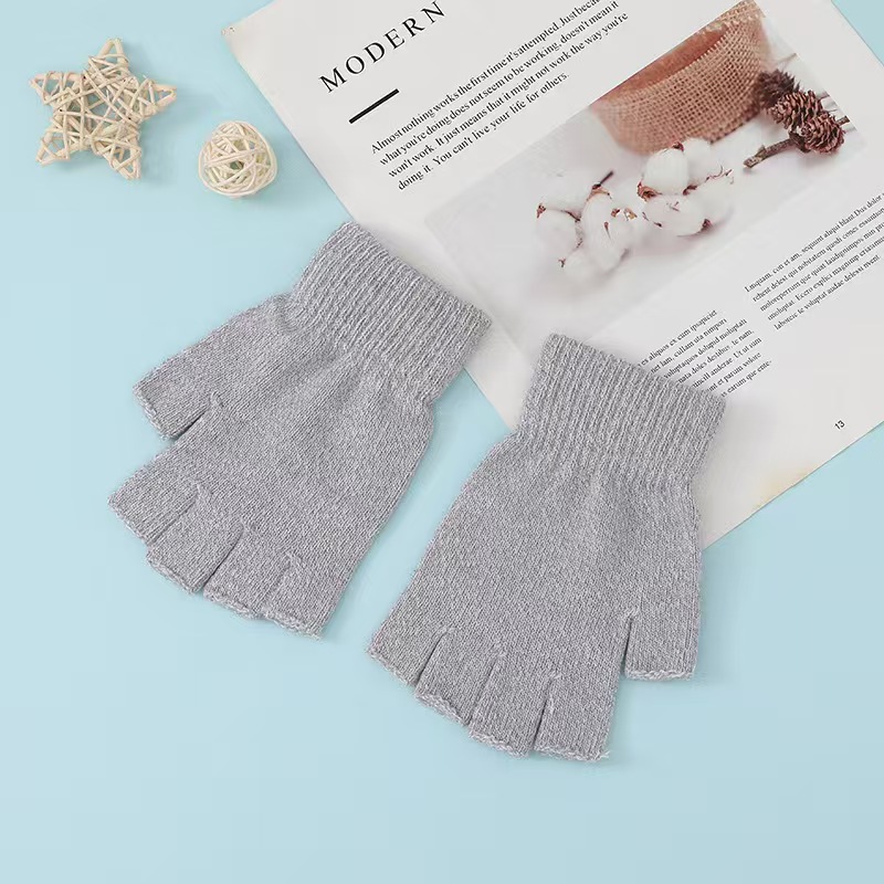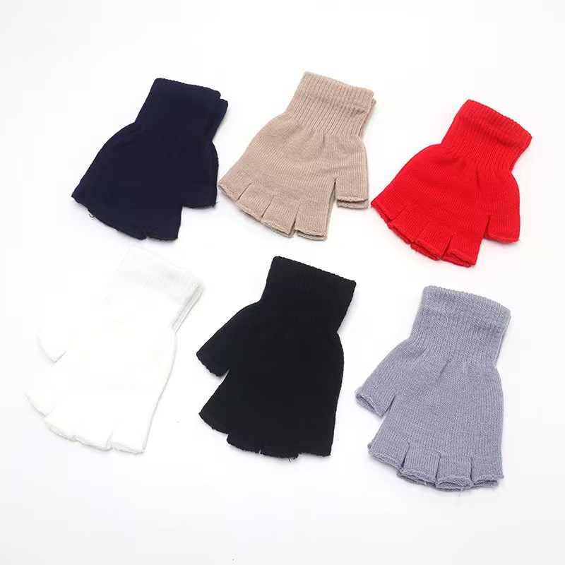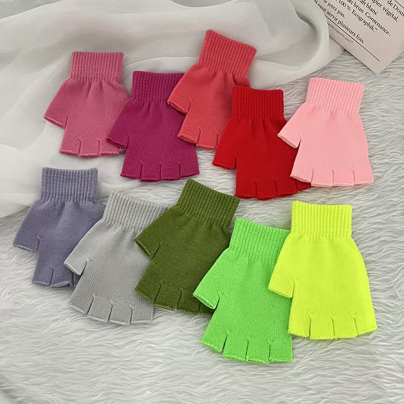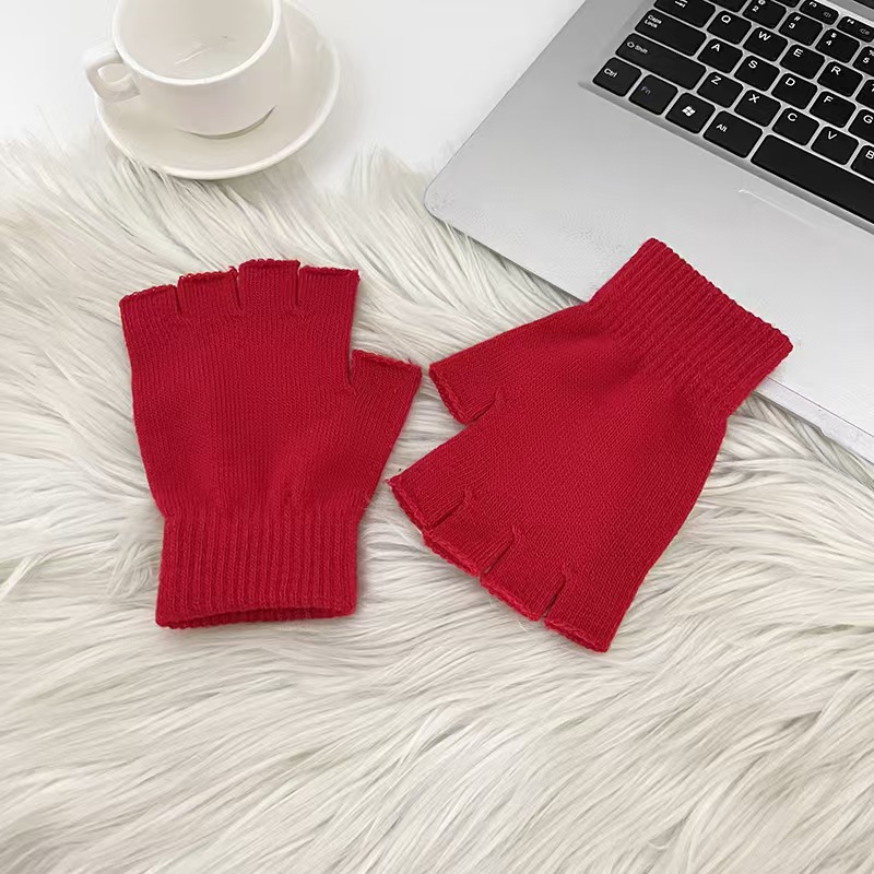 따뜻한 단색 니트 반장갑, 손가락 노출형, 컴퓨터 학습용, 학생용, 남녀공용, 방한, 터치스크린, 겨울용