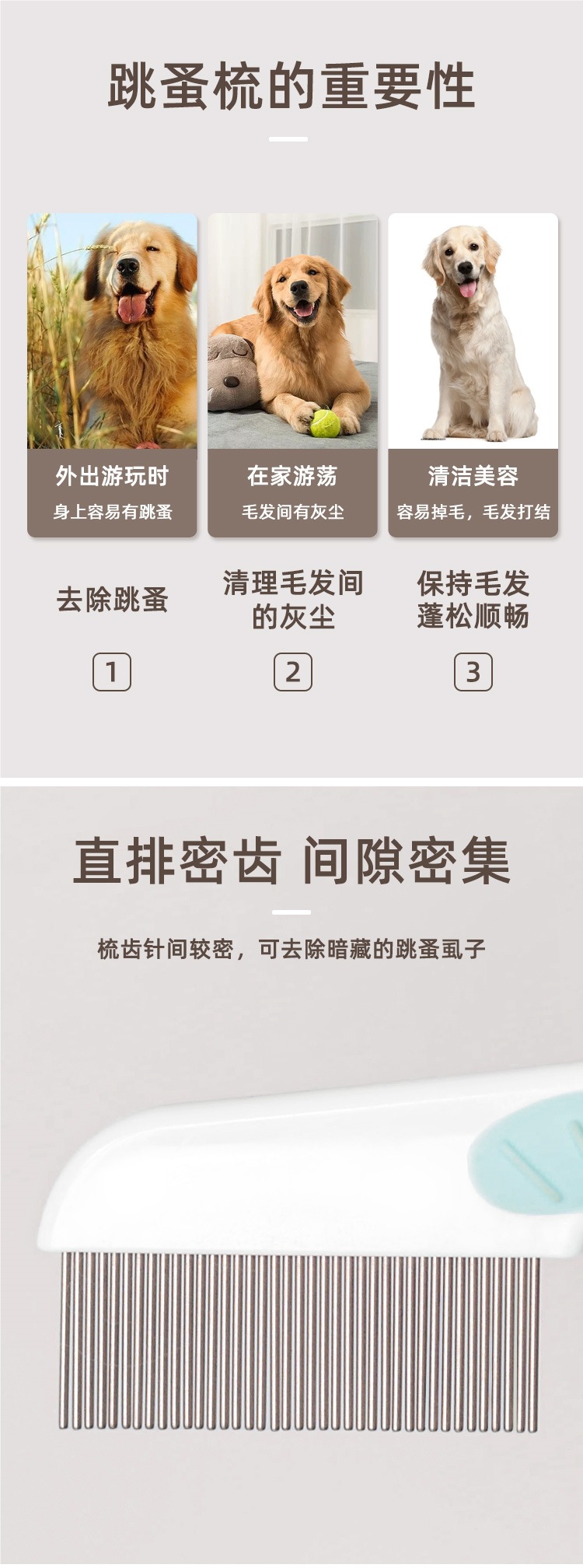 애완동물용 헤어 빗, 강아지 입털, 비숑 테디 벼룩 빗, 치밀한 치아 바늘 빗, 빗 용품스토어 가기