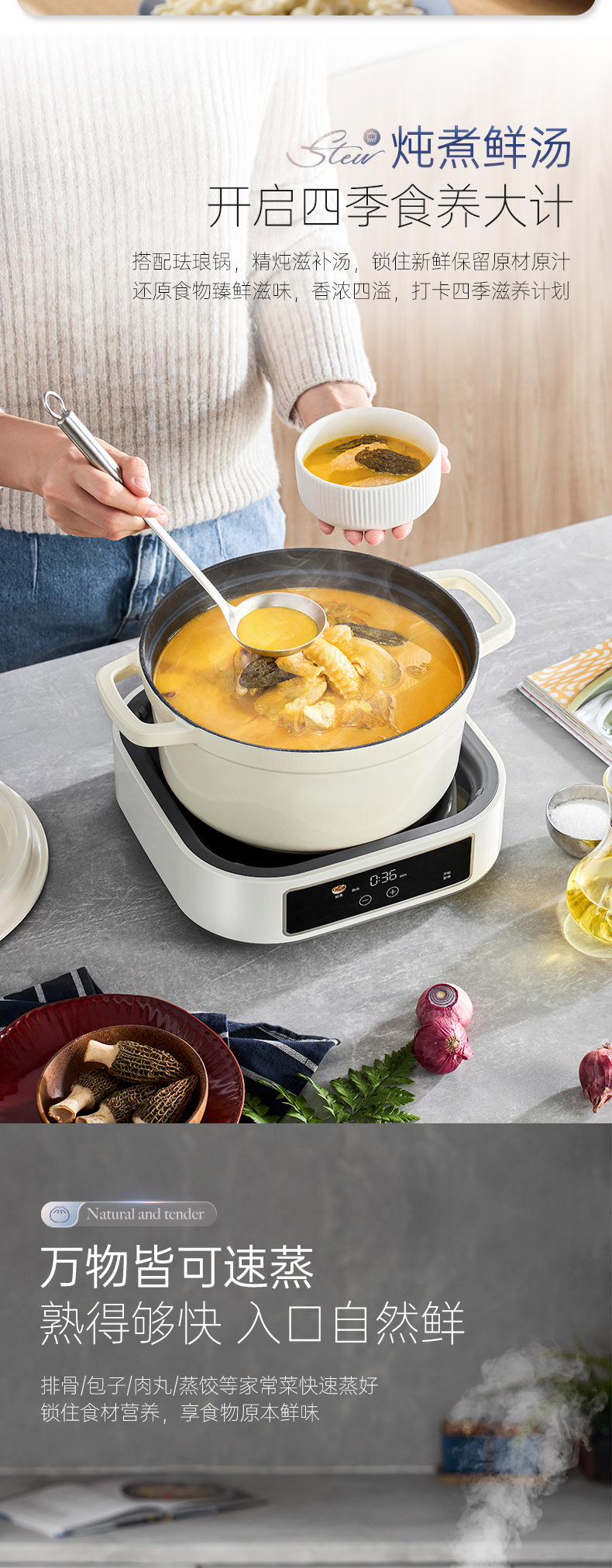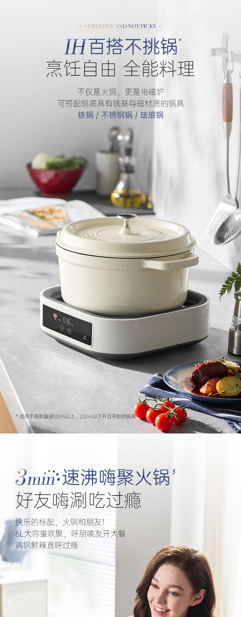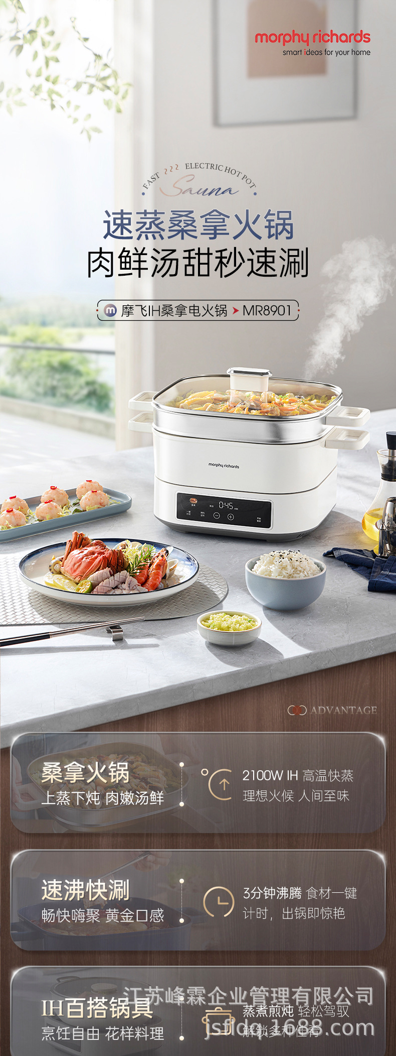 Mofei 전기 냄비 전기 찜통 가정용 IH 사우나 전기 요리 냄비 6L 찌고 삶기 올인원 다기능 냄비 MR8901스토어 가기