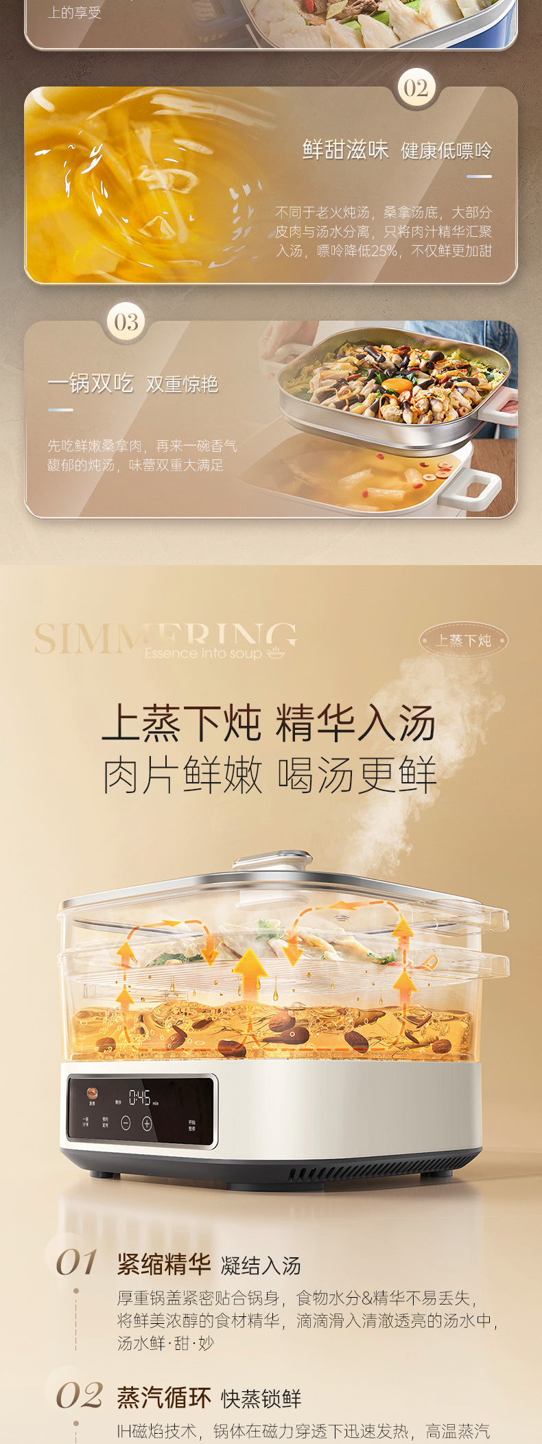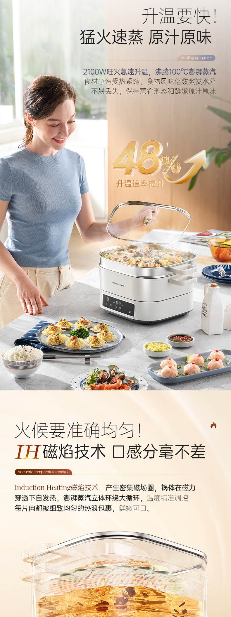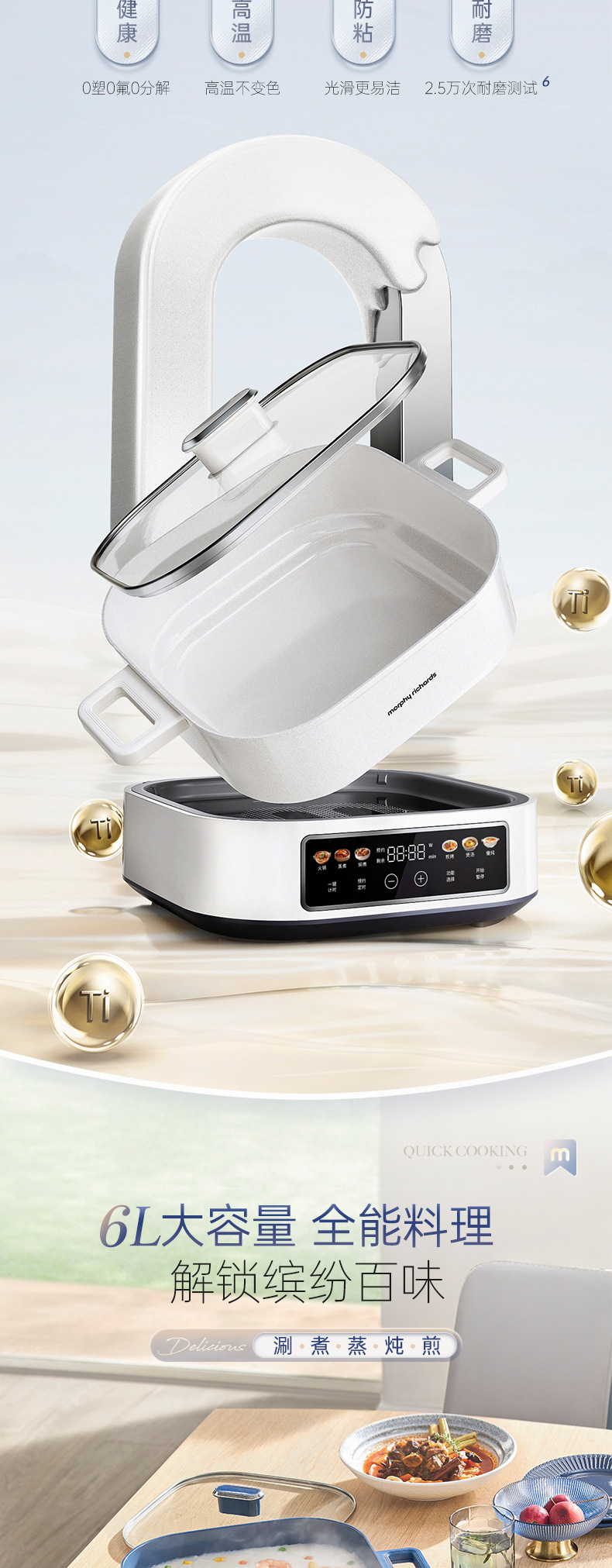 Mofei 전기 냄비 전기 찜통 가정용 IH 사우나 전기 요리 냄비 6L 찌고 삶기 올인원 다기능 냄비 MR8901