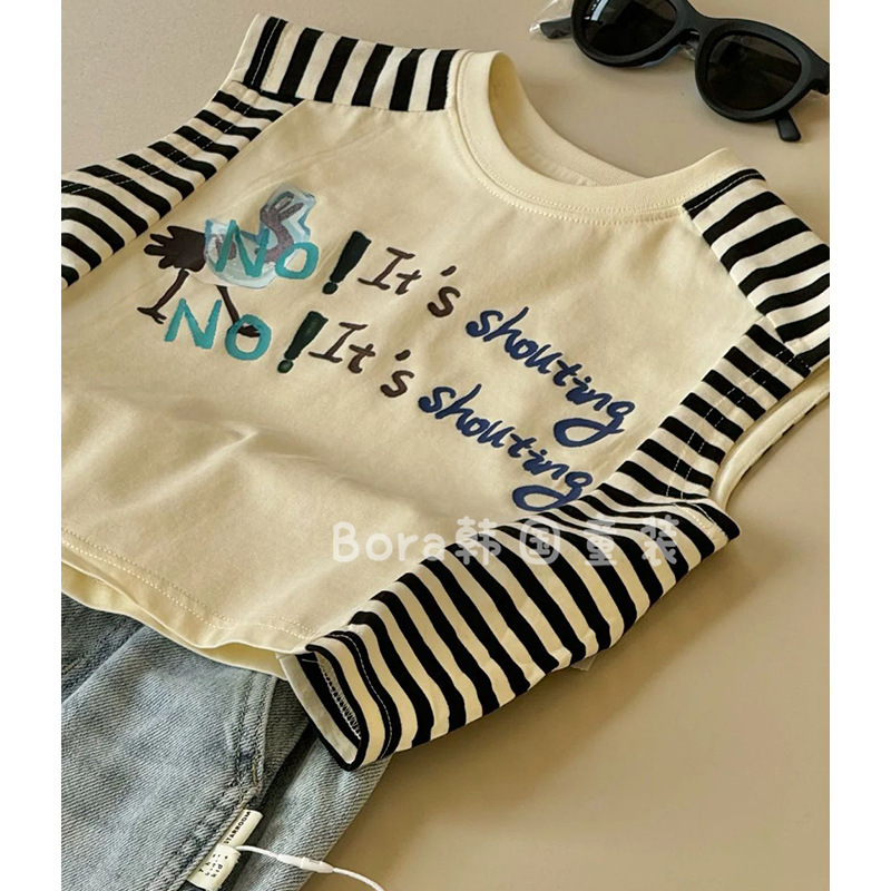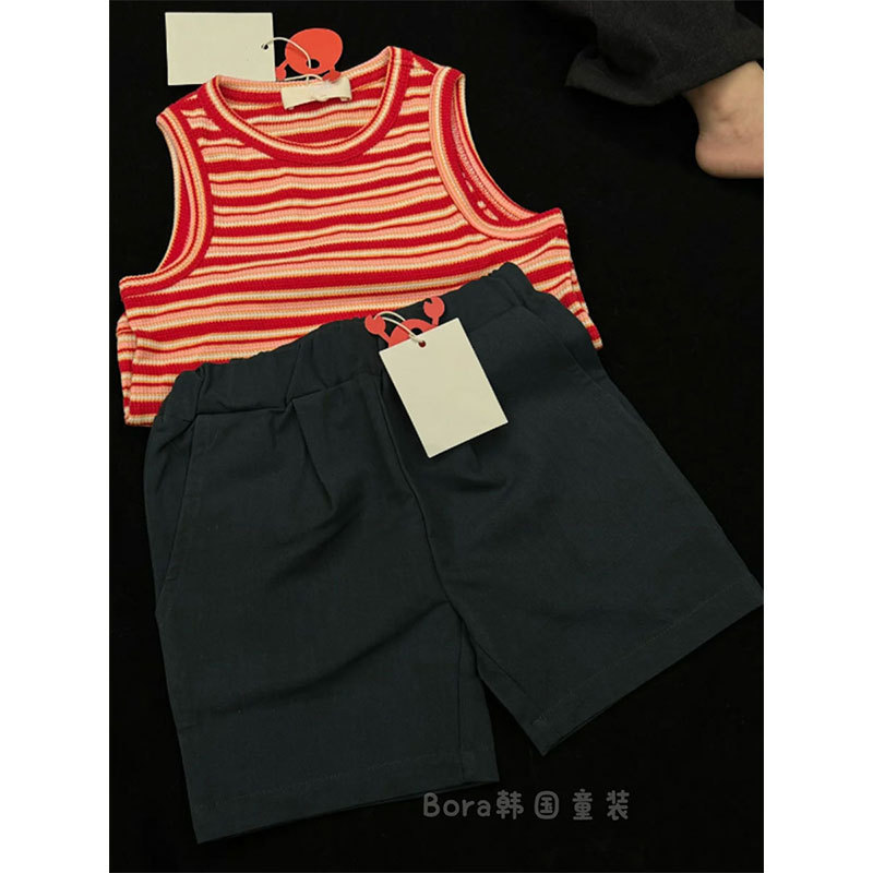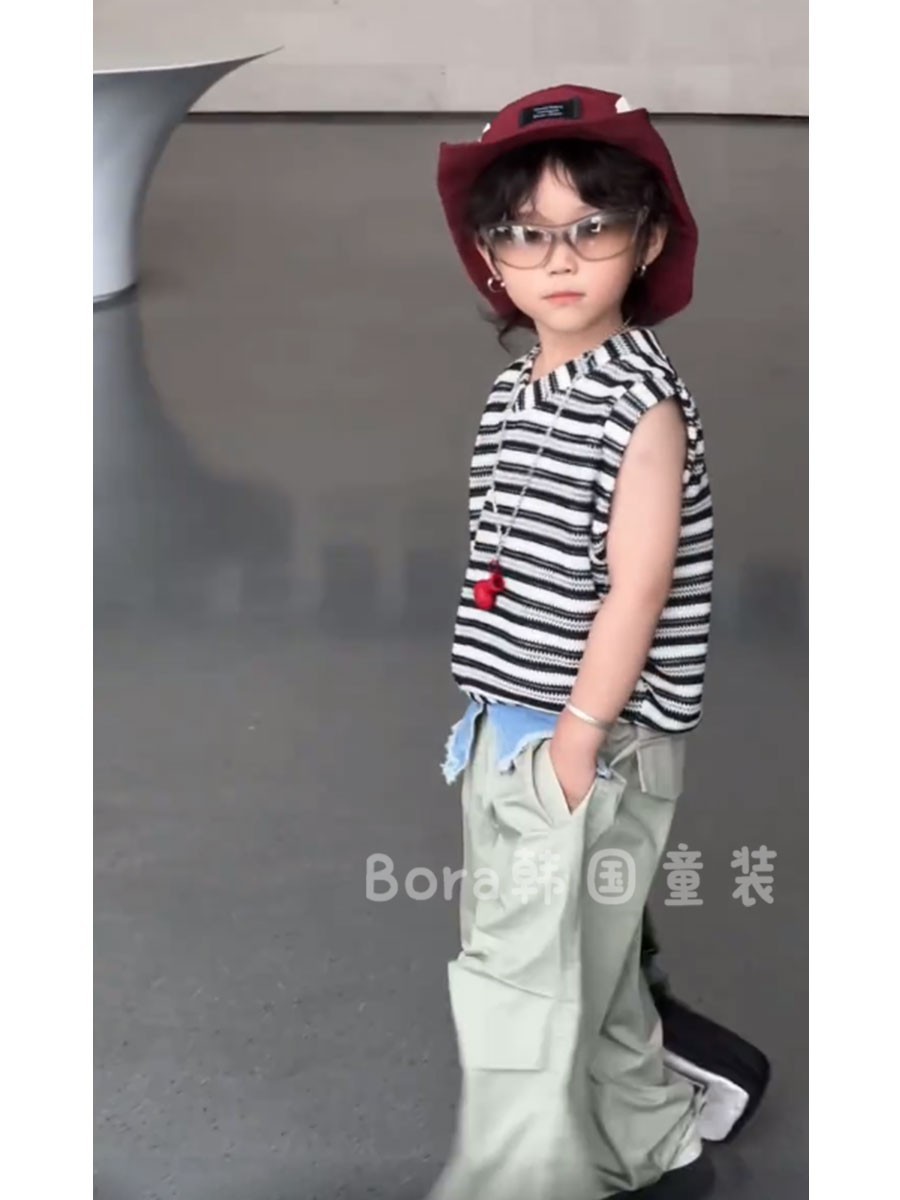 • 살구색 검정색 줄무늬 조끼