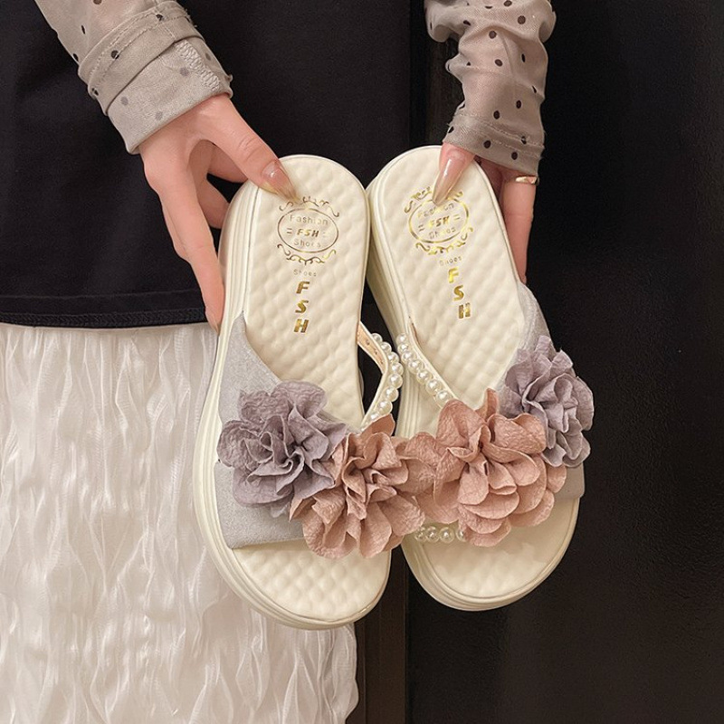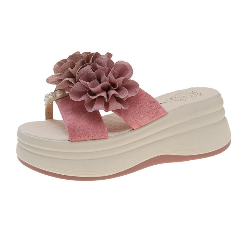 달콤한 스타일 여름 새로운 스타일 미드 힐 캐주얼 샌들 겉옷 여성 샌들 플랫폼 두꺼운 밑창 꽃 여성 샌들