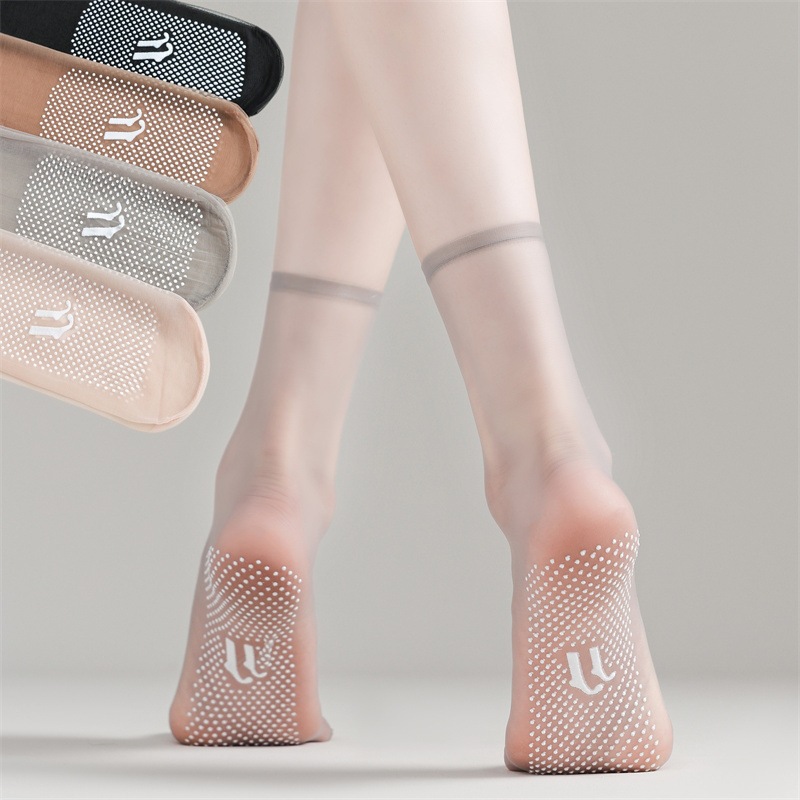 걸림 방지 점착제, 미끄럼 방지 스틸 스타킹, 여성용 초박형 보이지 않는 짧은 스타킹, 여름 완전 투명 양말, 살색 크리스탈 양말