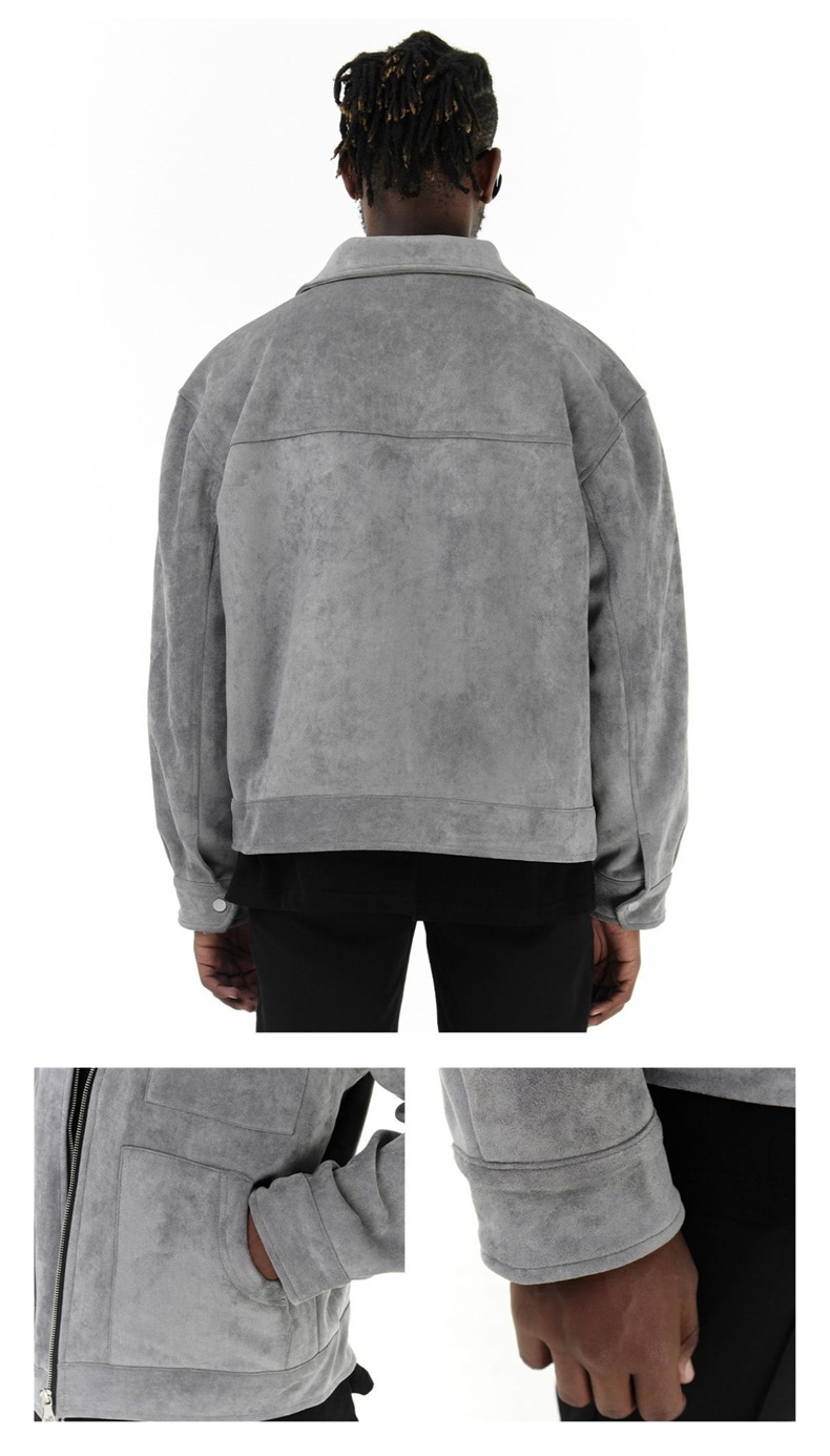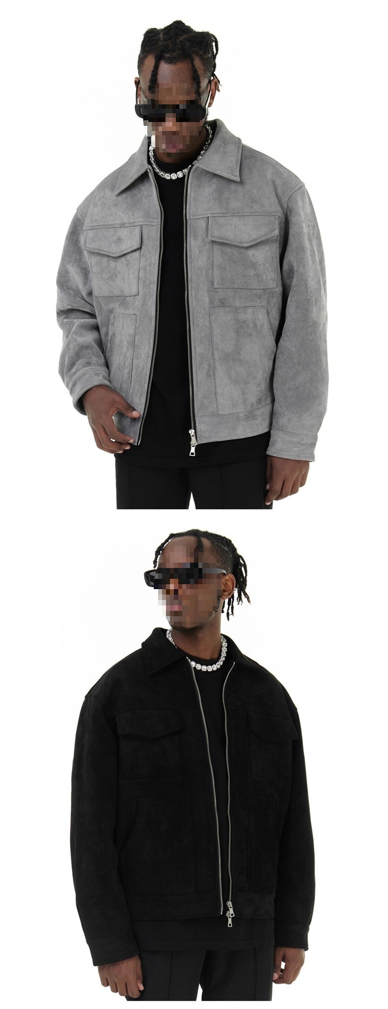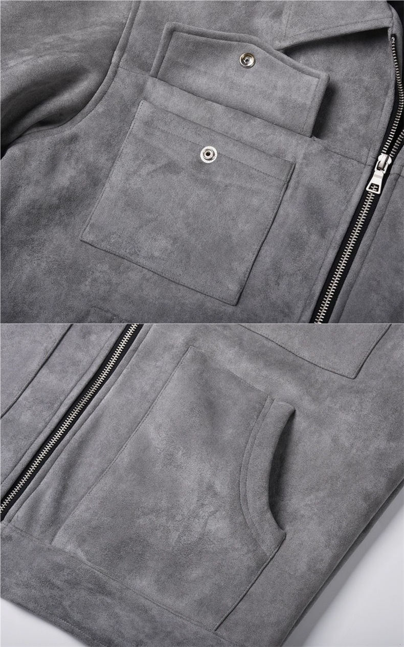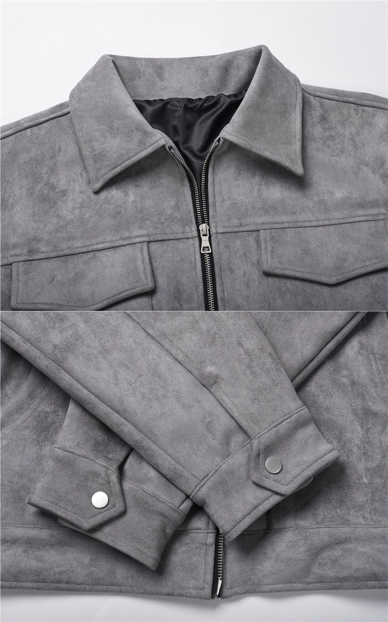 국경 간 봄, 가을 남성의 새로운 스타일 심플한 금속 지퍼 라펠 짧은 재킷 트렌디 캐주얼 통근 복고풍 유럽과 미국스토어 가기