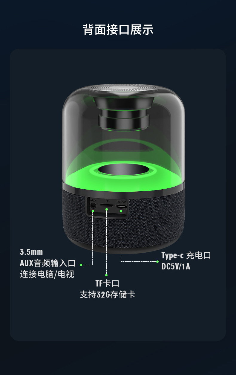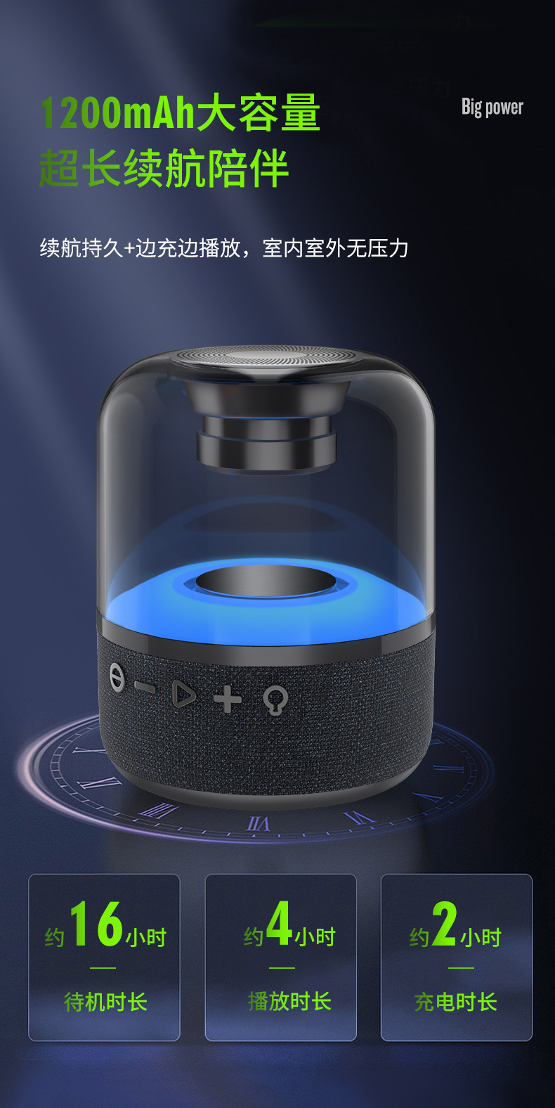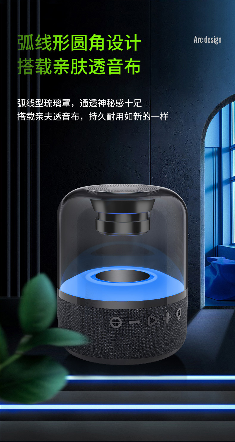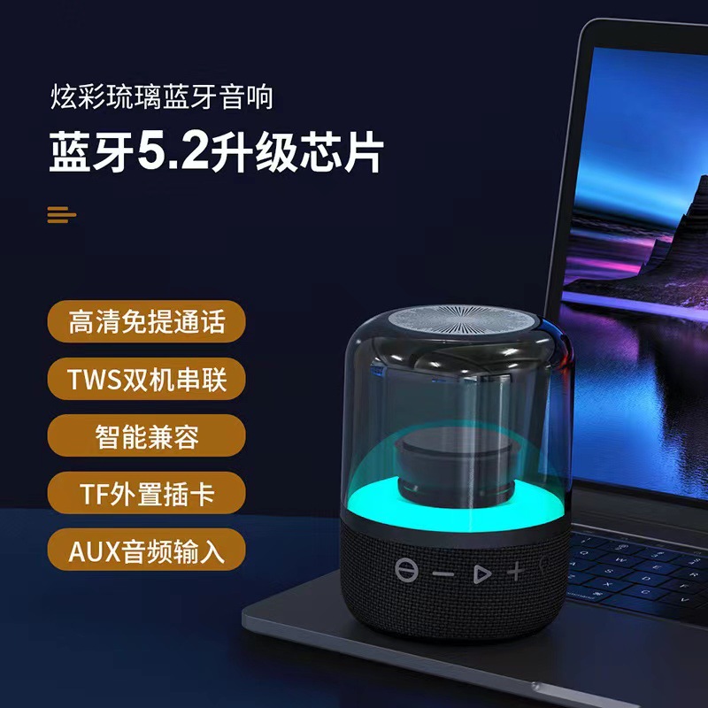 유리 블루투스 스피커 다채로운 조명 데스크탑 10W 고출력 오디오 카드 블루투스 오디오스토어 가기