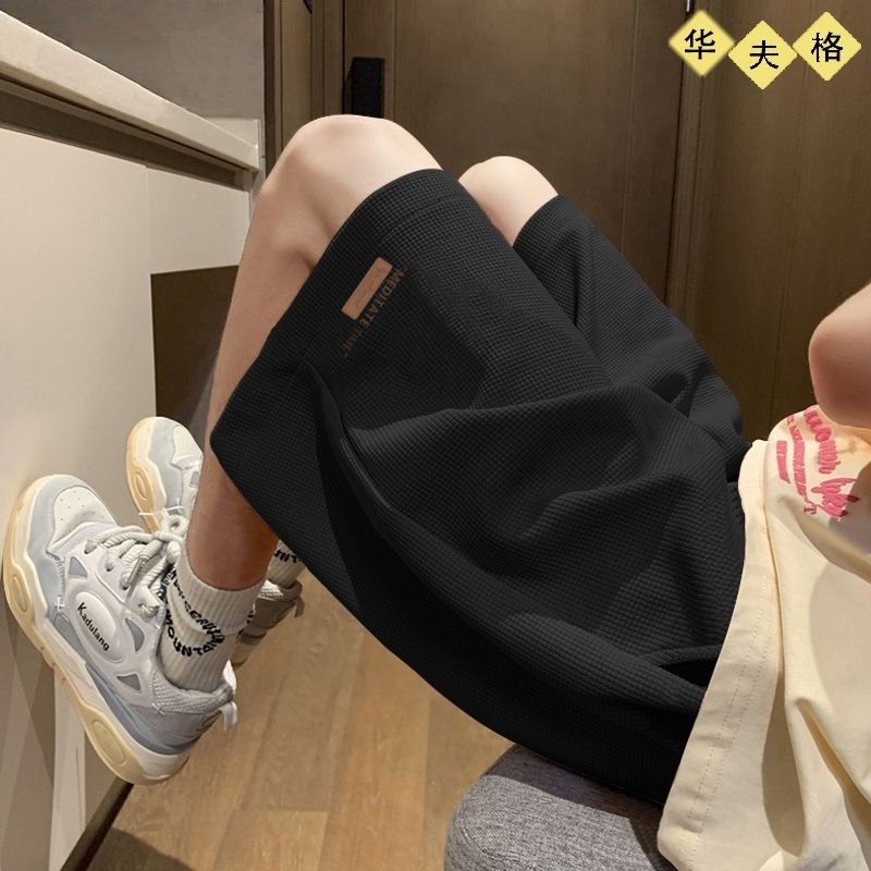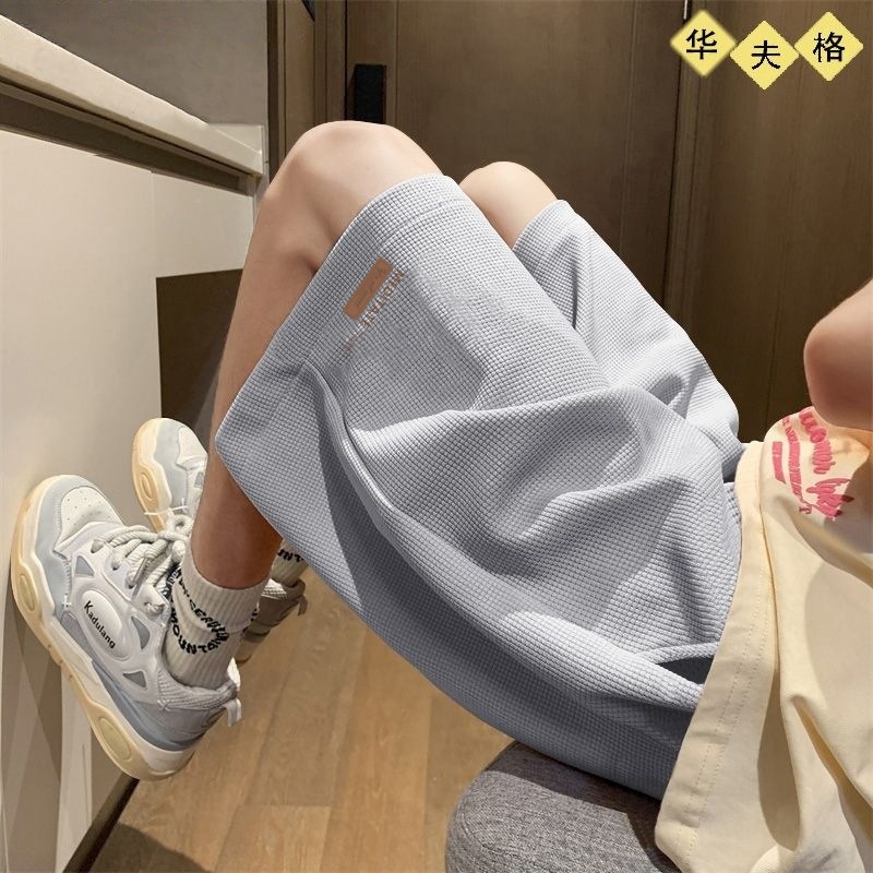 플러스 사이즈 남성용 와플 반바지 여름 루즈하고 트렌디하며 다재다능한 5부 비치 팬츠 캐주얼 스포츠 반바지스토어 가기