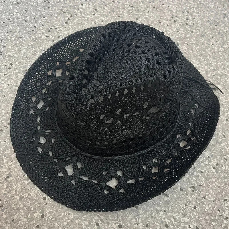 보헤미안 스타일 밀짚 모자 여름 해변 민족 스타일 중공 카우보이 모자 태양 모자 태양 보호 서양 카우보이 모자