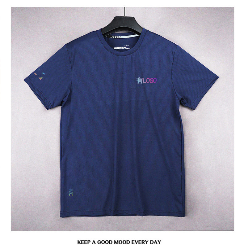 브랜드 대외 무역 속건성 스포츠 반팔 남성용 얼음 실크 통기성 러닝 루즈 탑 야외 레저 피트니스 스포츠웨어