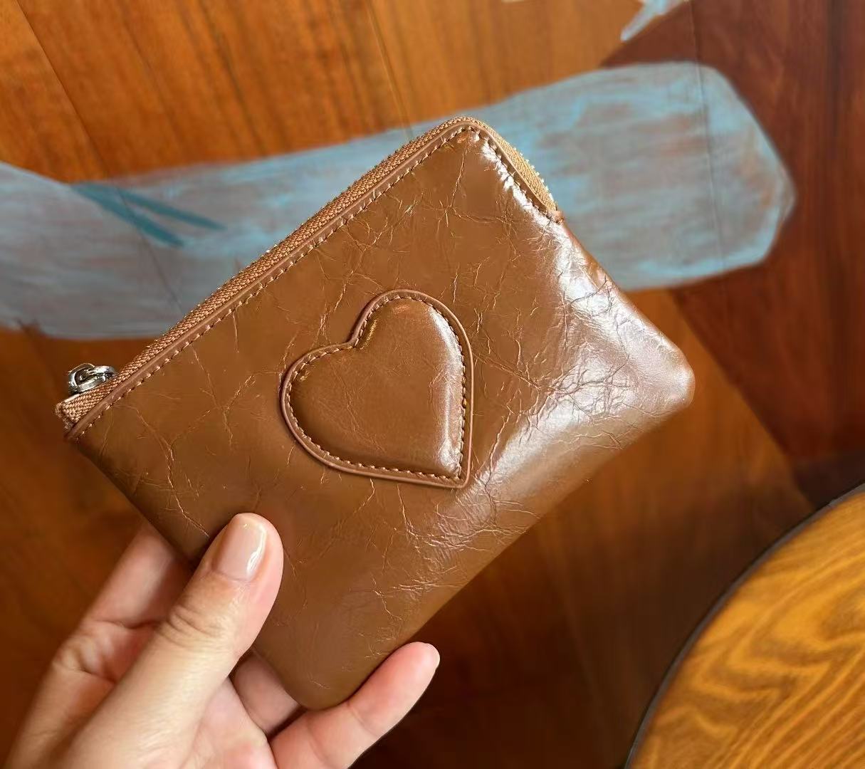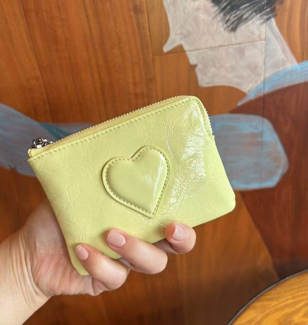 2025 새로운 최고급 소가죽 미니 핸드 트위스트 동전 지갑 여성용 러브 가죽 키 보관 카드 홀더 동전 가방스토어 가기