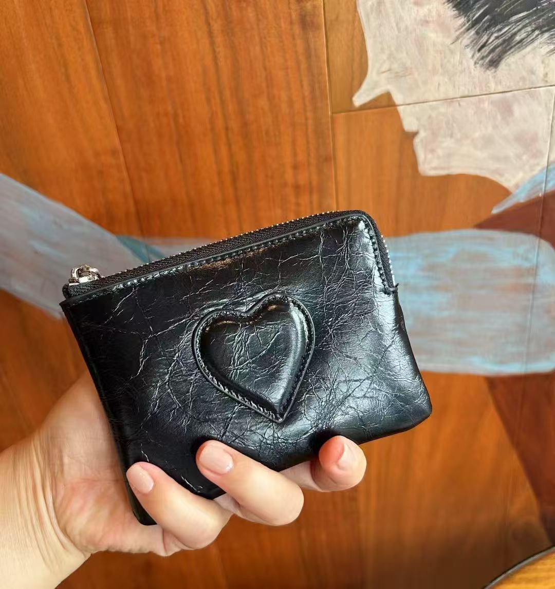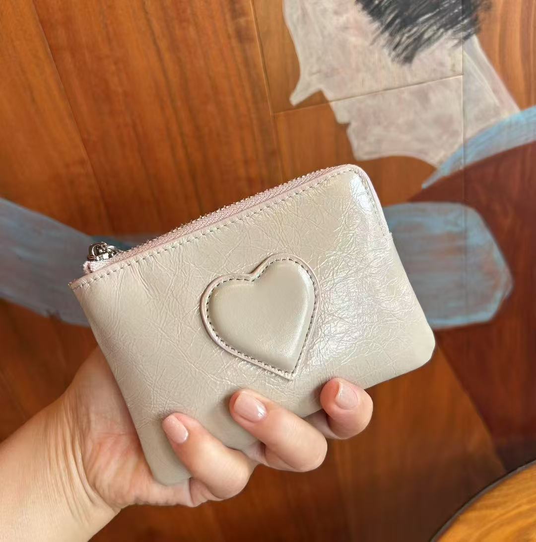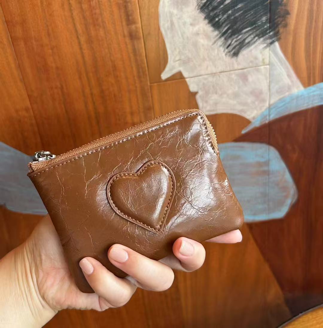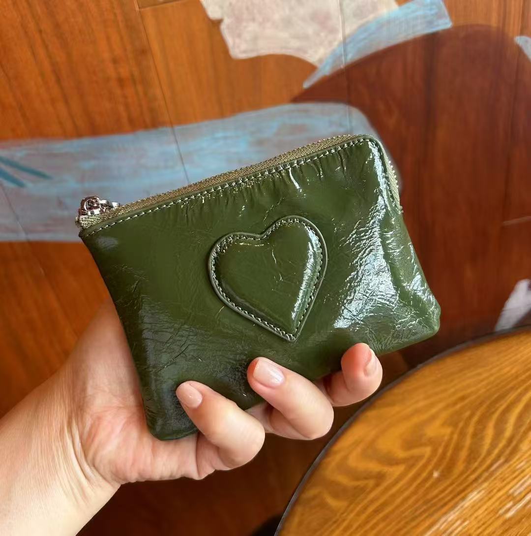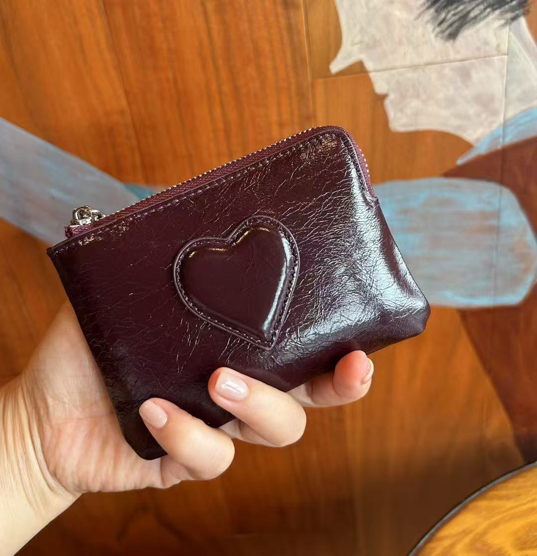 2025 새로운 최고급 소가죽 미니 핸드 트위스트 동전 지갑 여성용 러브 가죽 키 보관 카드 홀더 동전 가방