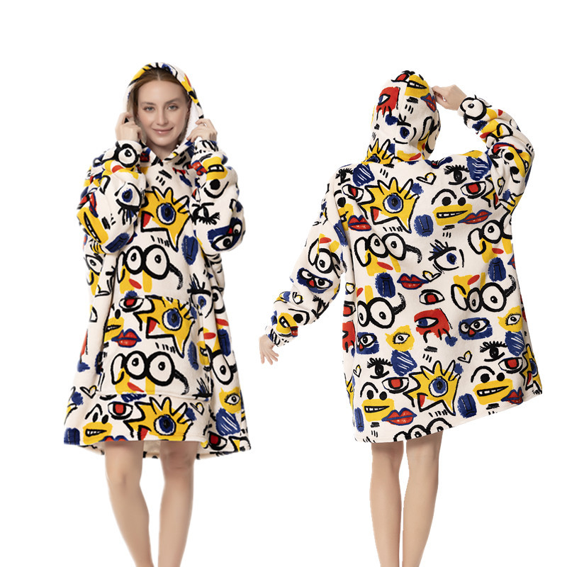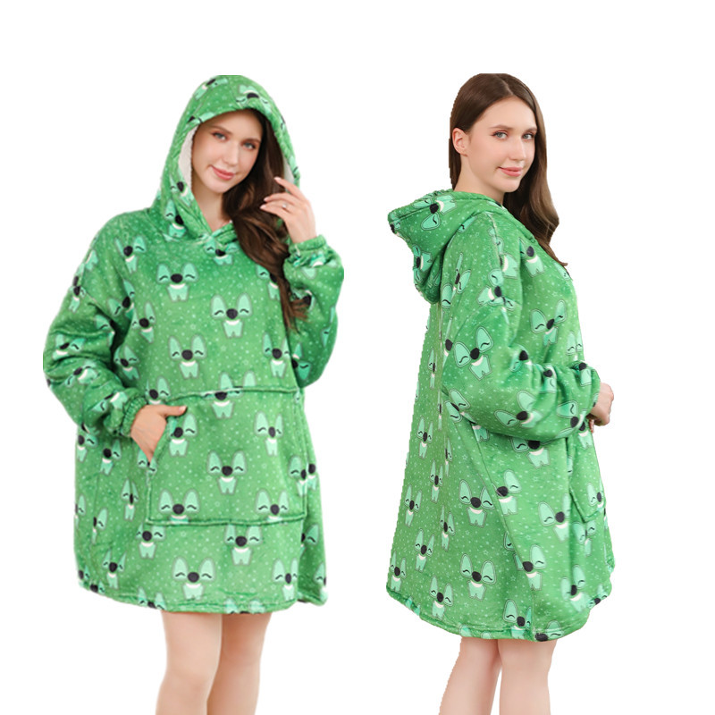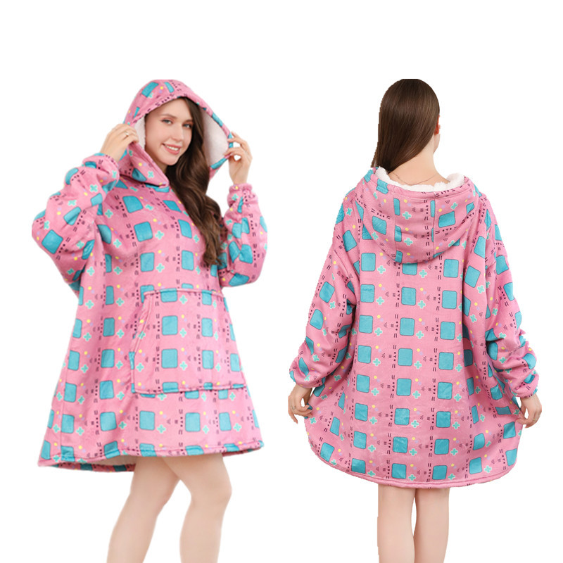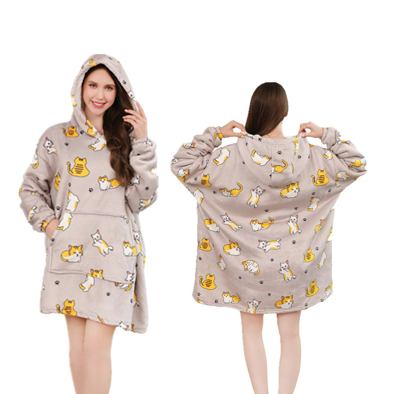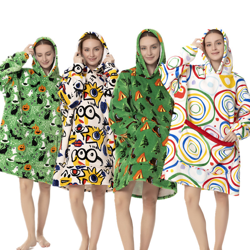 방한복 후드티 웨어러블 담요 스웨트셔츠 오버사이즈 따뜻한 풀오버 레이지 스웨트셔츠 엑스트라 롱