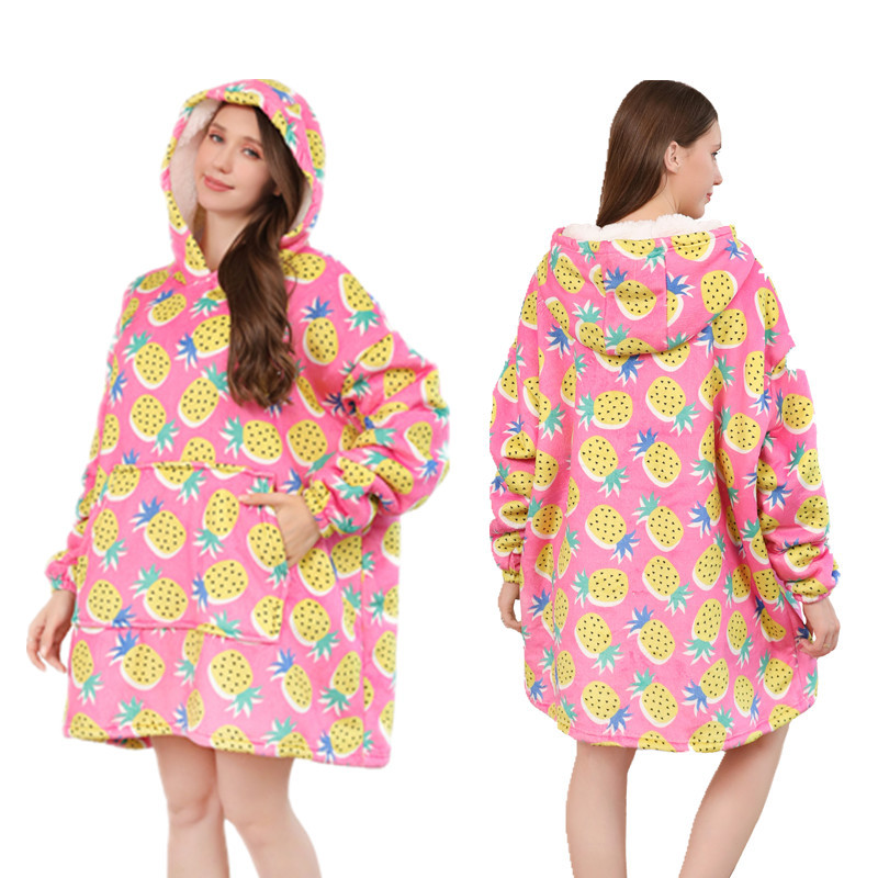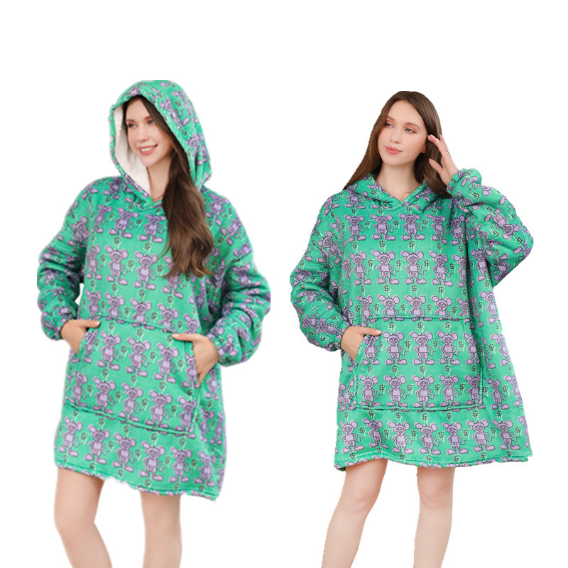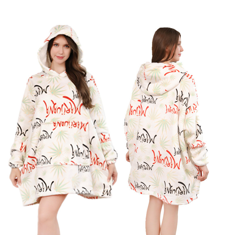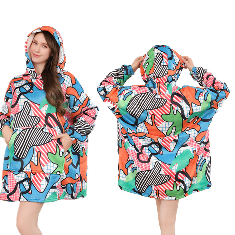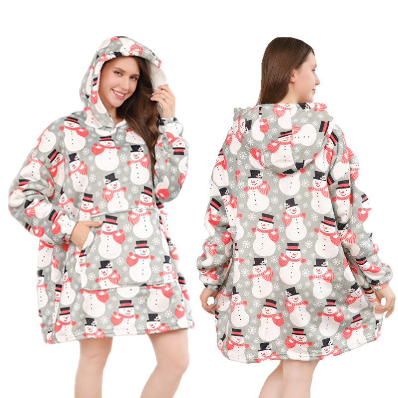 방한복 후드티 웨어러블 담요 스웨트셔츠 오버사이즈 따뜻한 풀오버 레이지 스웨트셔츠 엑스트라 롱
