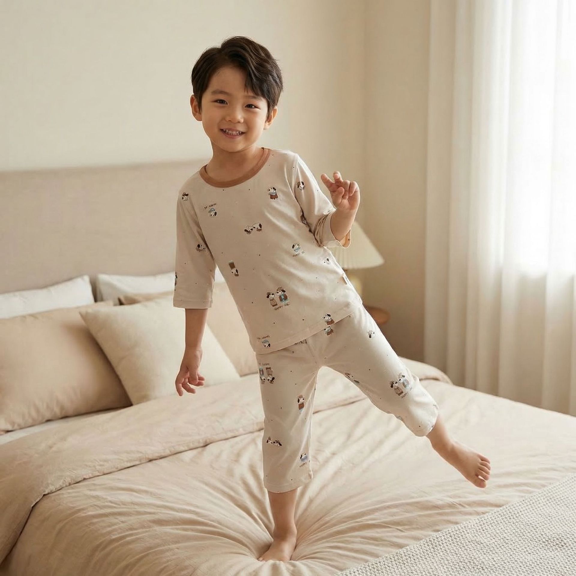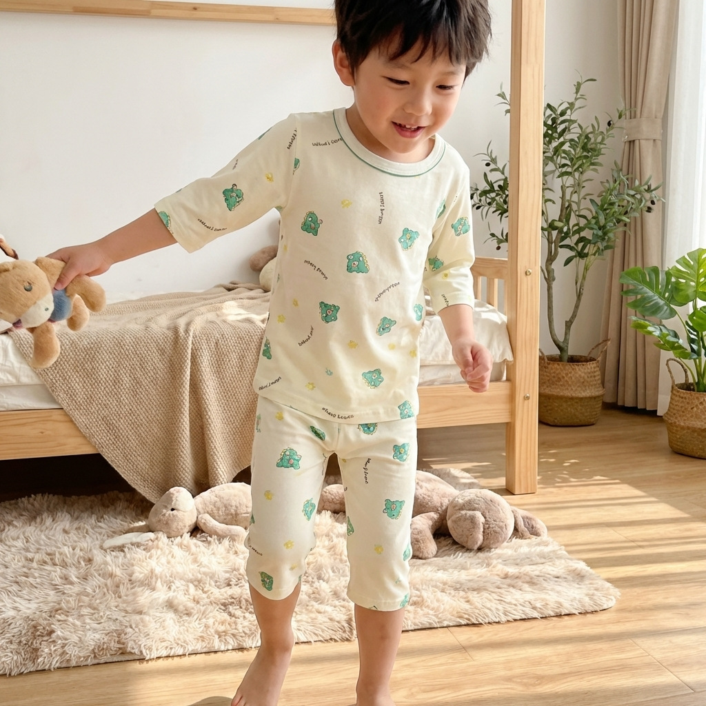 [맞춤형] 남아 및 여아용 아동용 7부 소매 여름 리오셀 에어컨 의류, 뼈없는 잠옷, 에코 실크 홈웨어스토어 가기