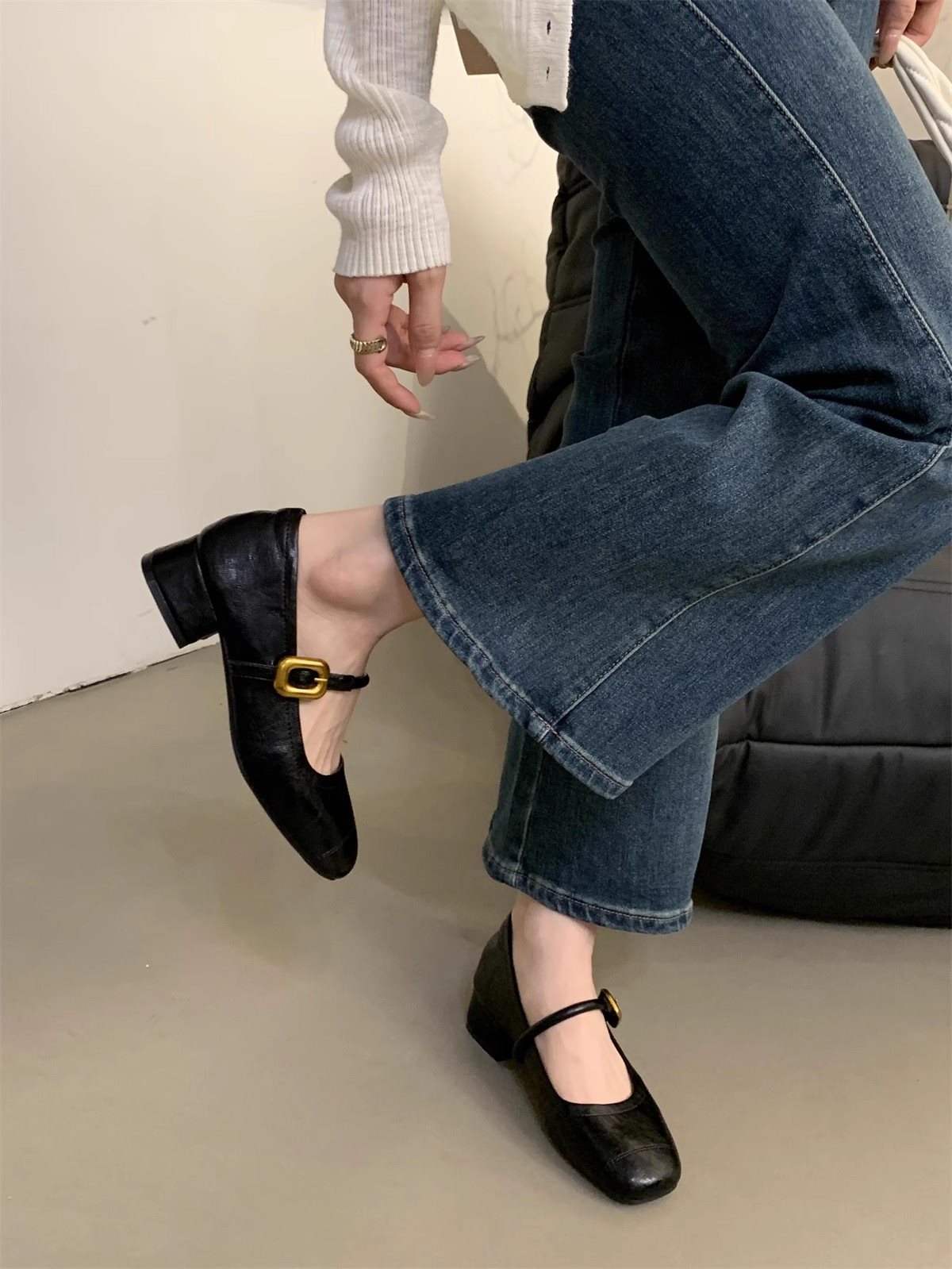 프렌치 스프링 메리제인 슈즈 한국식 펌프스 여성 이브닝 스타일 2025 작은 가죽 신발 중간 두꺼운 굽 새로운 복고풍스토어 가기