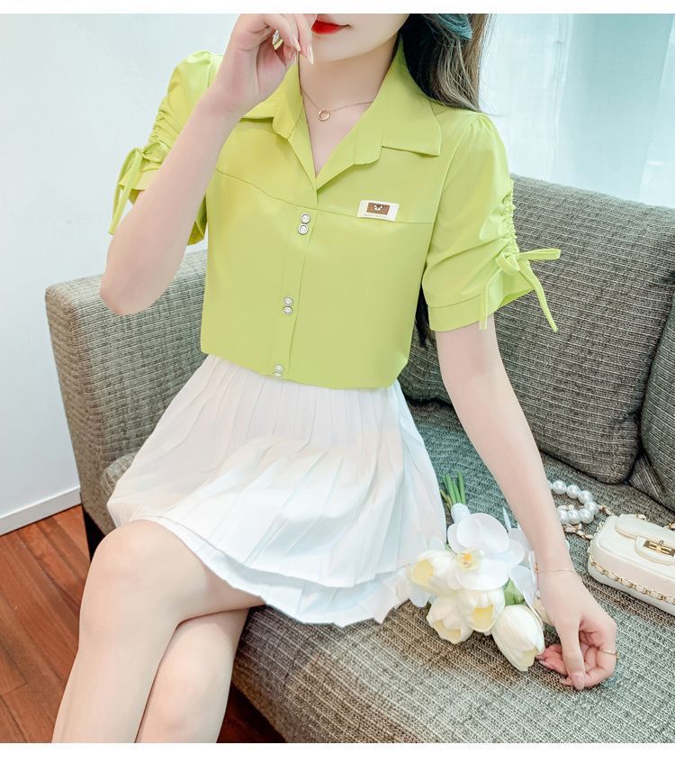 몸집이 작은 여성을 위한 여름 신작 반팔 쉬폰 셔츠, 프렌치 스위트 시크 얇은 탑, 패셔너블한 셔츠