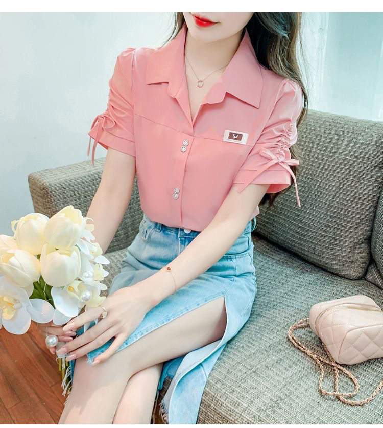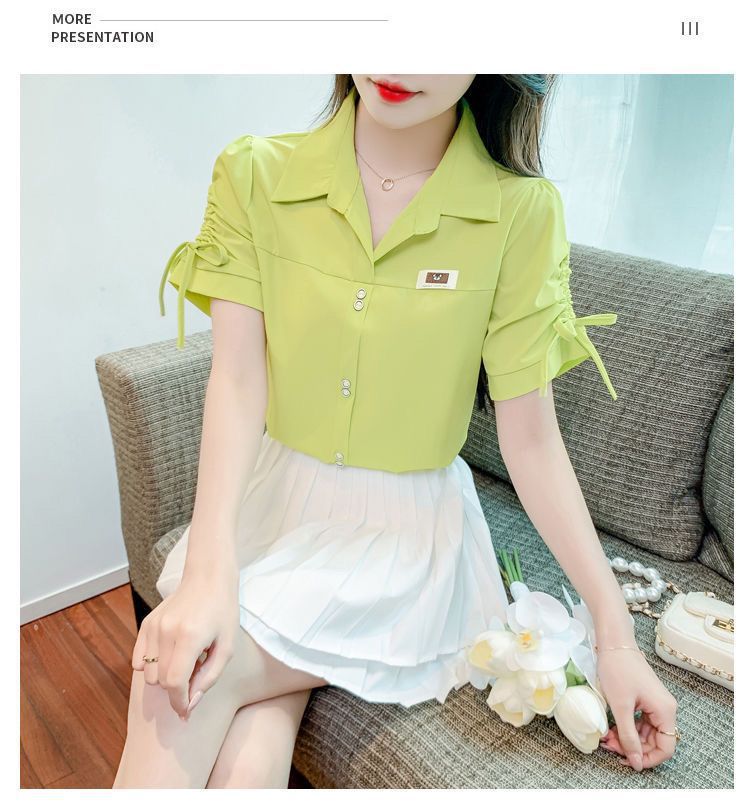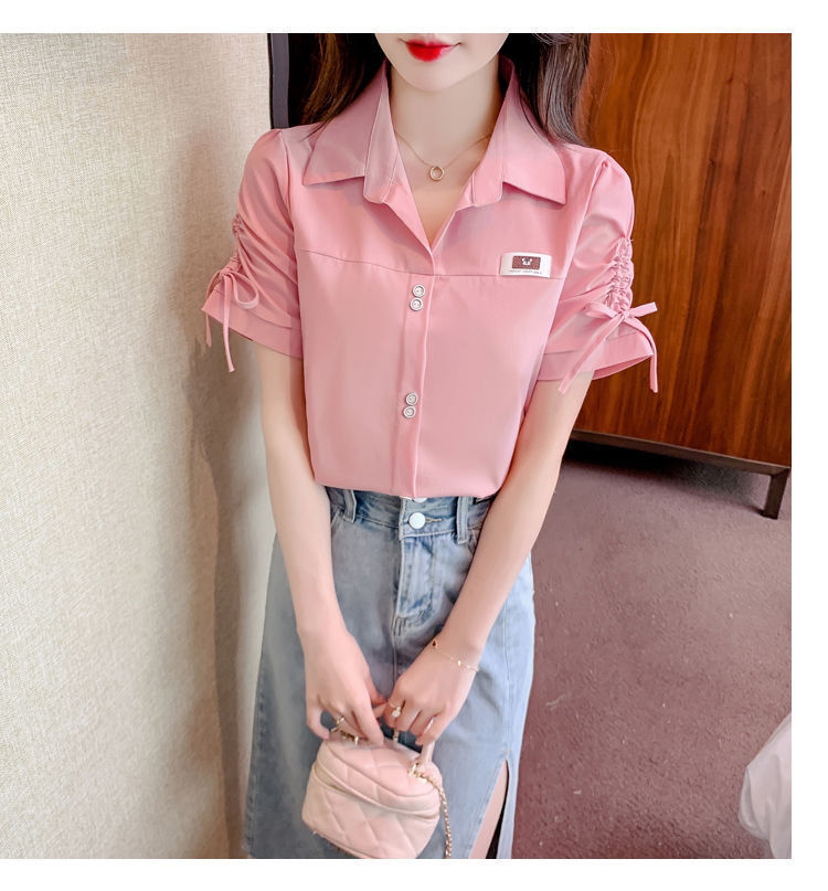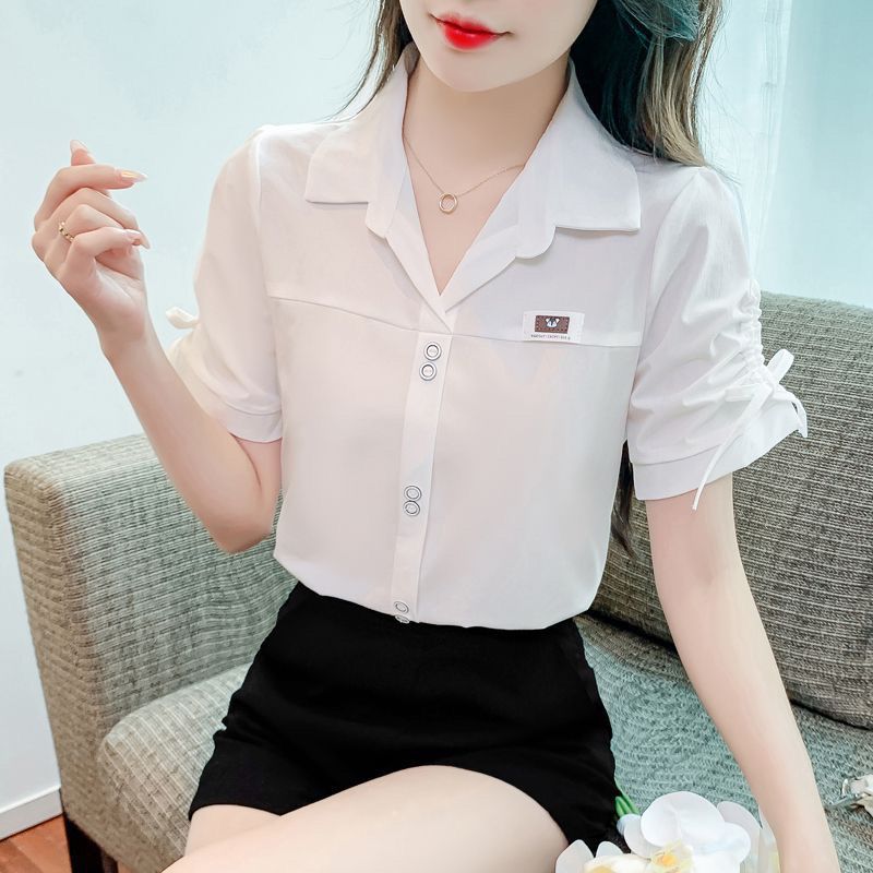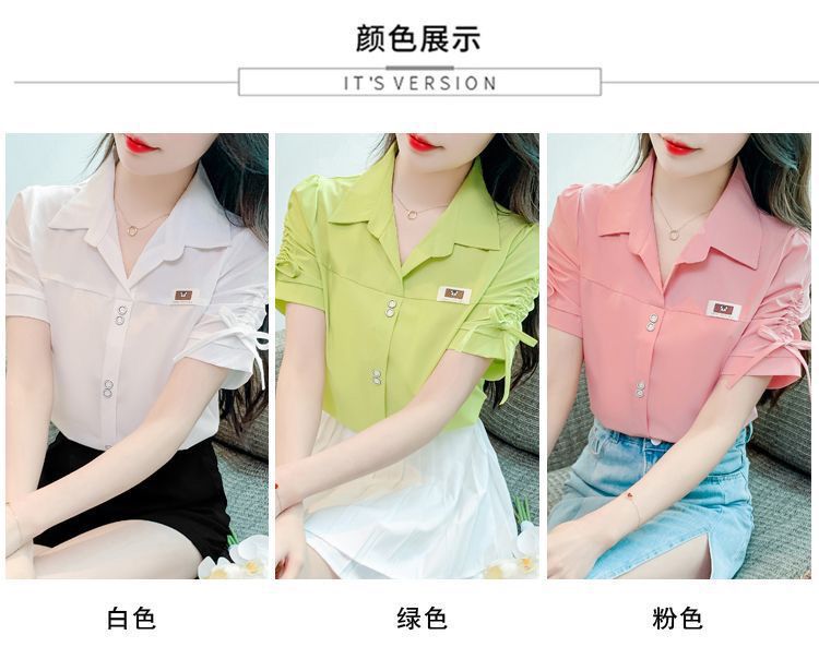 몸집이 작은 여성을 위한 여름 신작 반팔 쉬폰 셔츠, 프렌치 스위트 시크 얇은 탑, 패셔너블한 셔츠스토어 가기