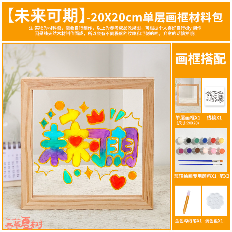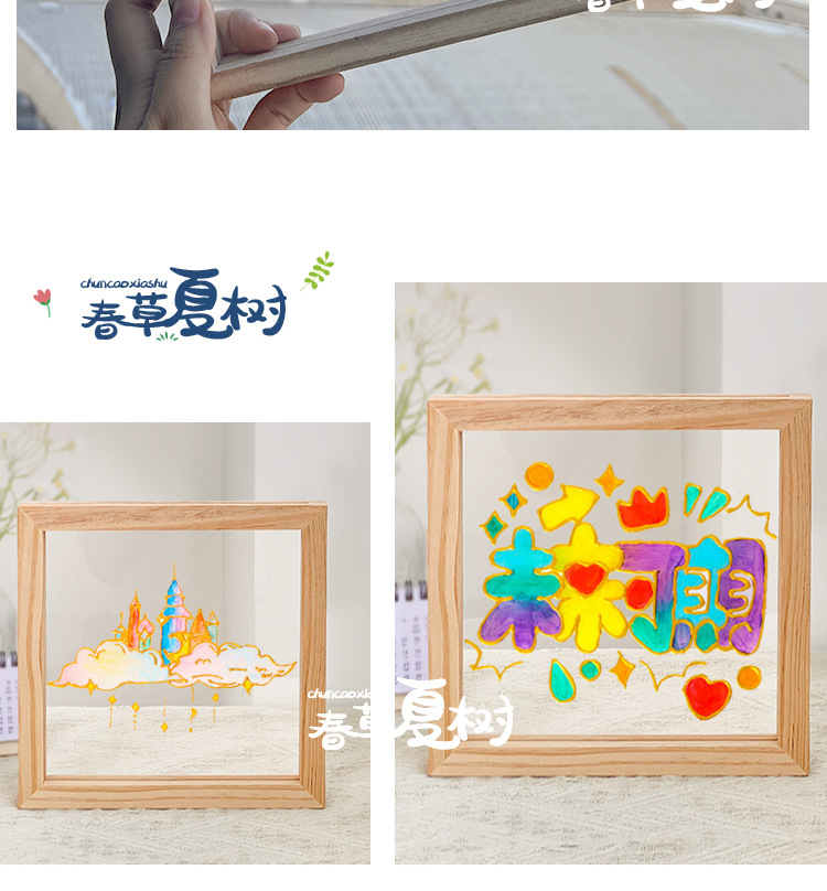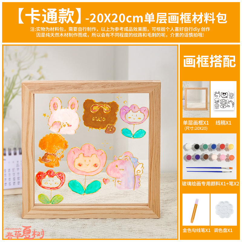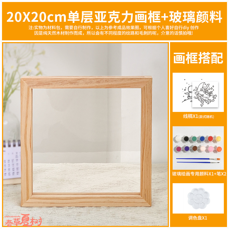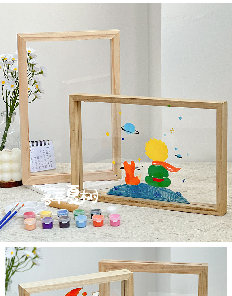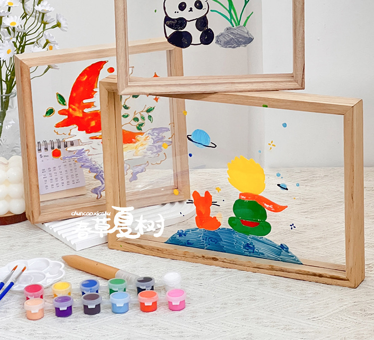 단단한 나무 아크릴 유리 액자 어린이 유치원 diy 그림 낙서 손으로 그린 크리 에이 티브 아트 수제 재료스토어 가기