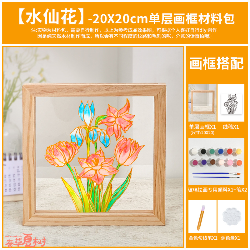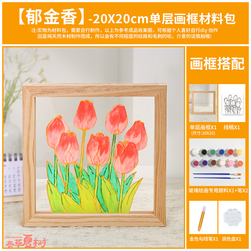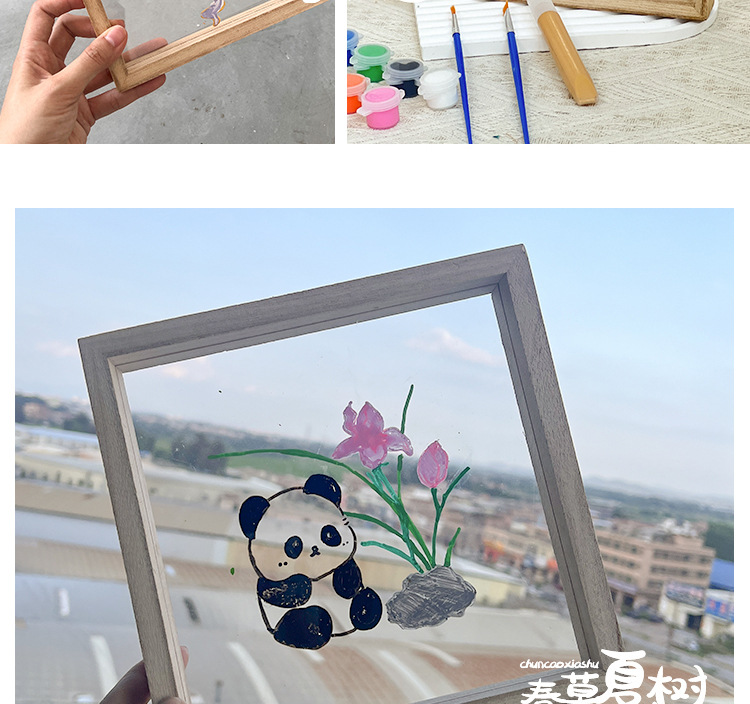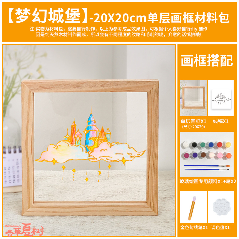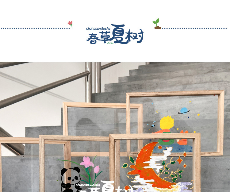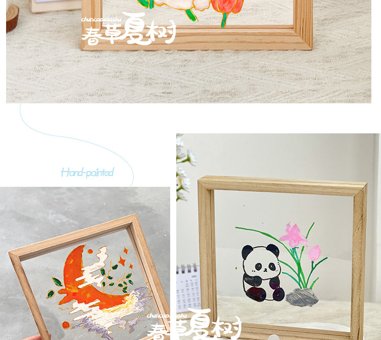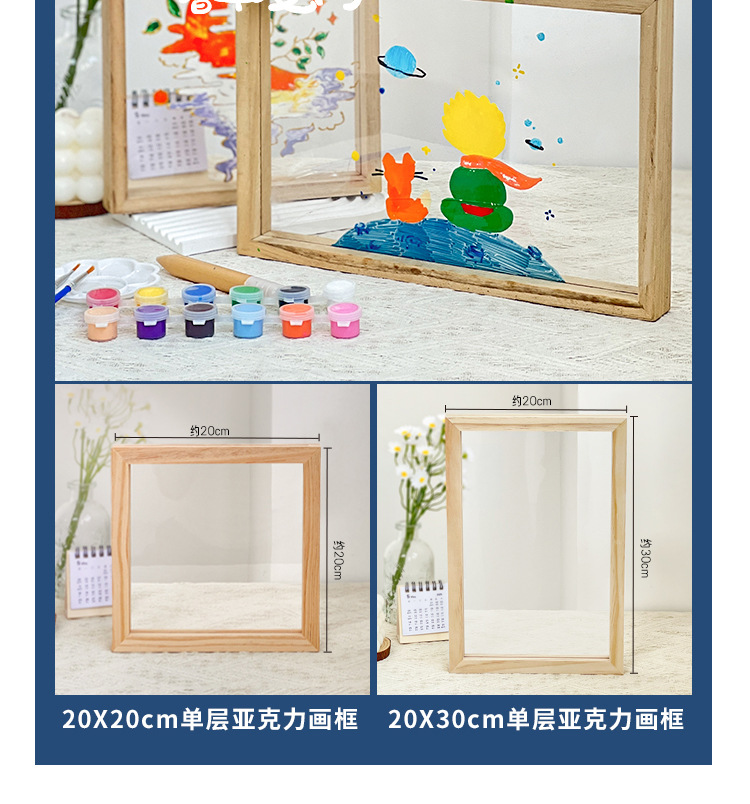 단단한 나무 아크릴 유리 액자 어린이 유치원 diy 그림 낙서 손으로 그린 크리 에이 티브 아트 수제 재료스토어 가기