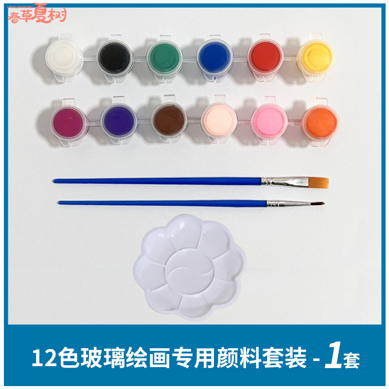 • 12색 유리 물감 + 붓 + 팔레트 1세트
