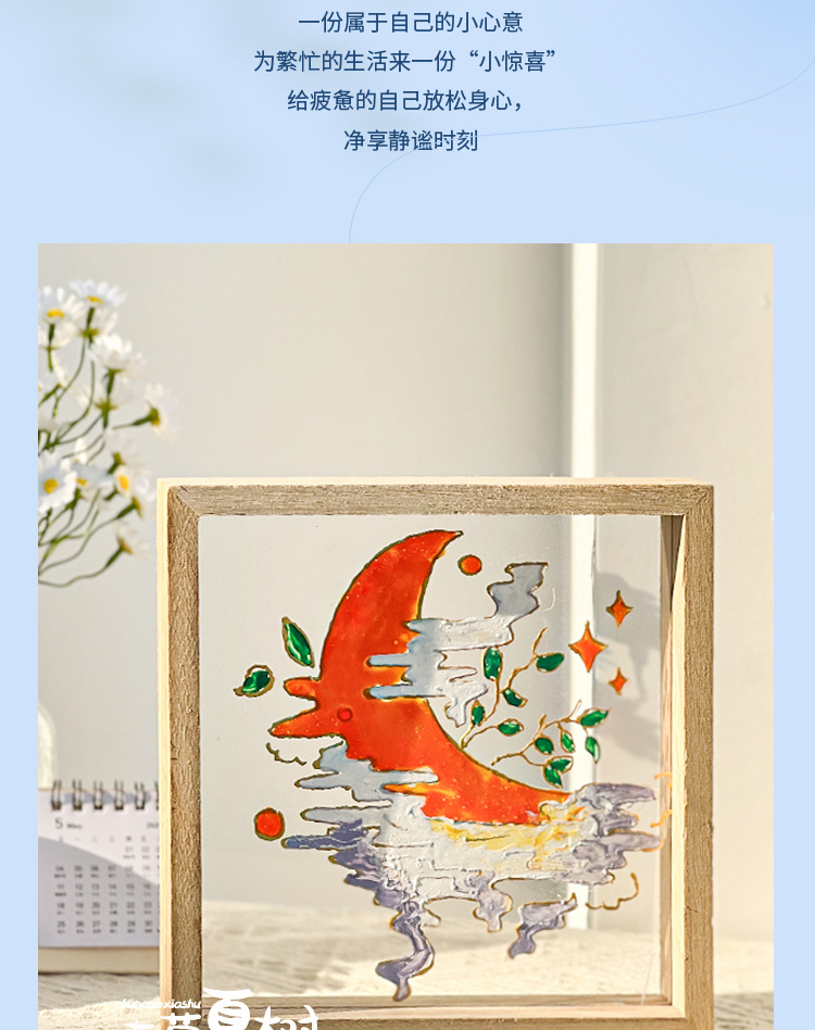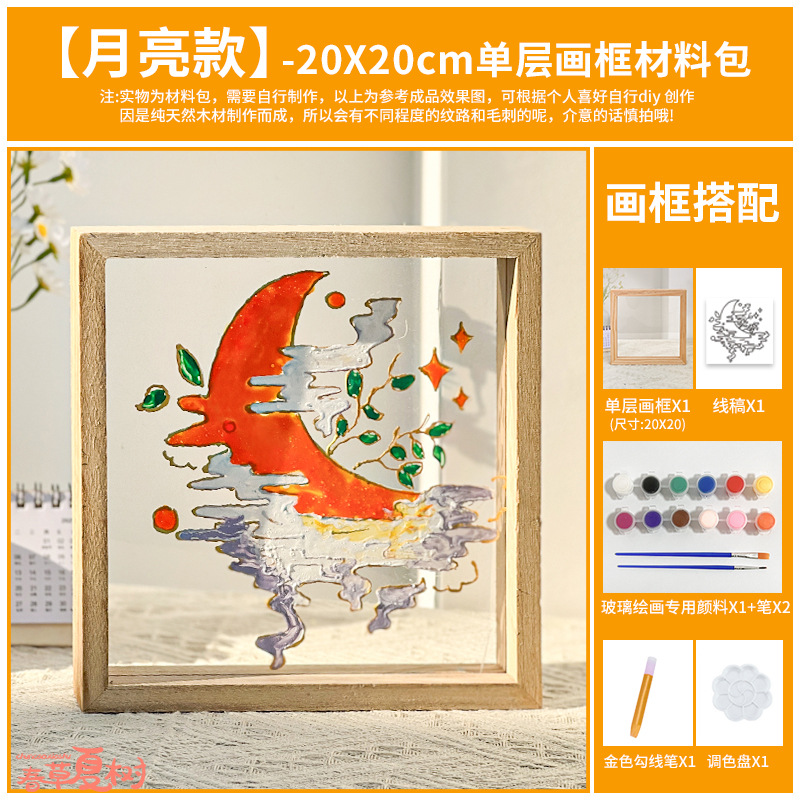 • 20*20cm 단일 레이어 아크릴 액자 + 유리 페인트 및 와이어 드로잉