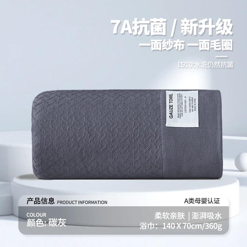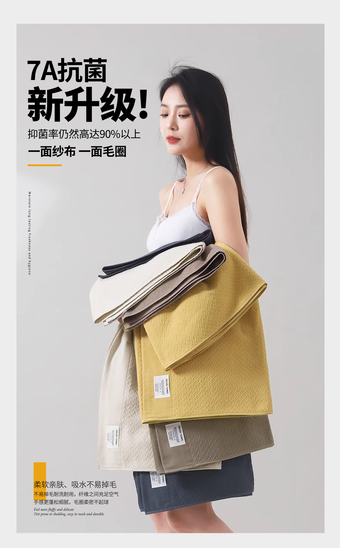 7A 항균 거즈 목욕 타올 순면 목욕 가정용 흡수성 보푸라기없는 속건성 성인 랩 솔리드 컬러 로고 자수