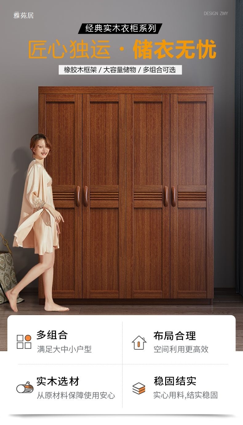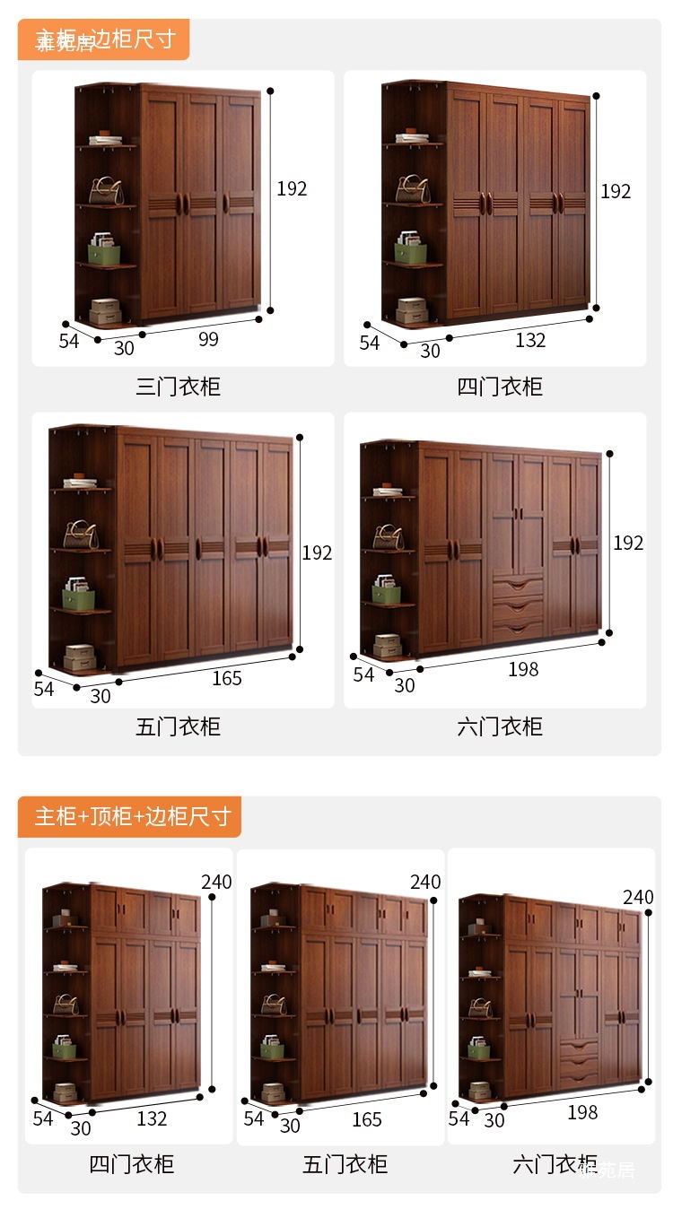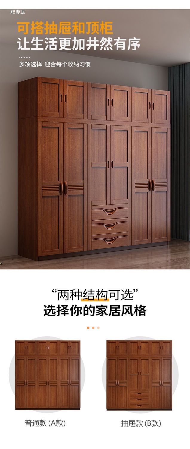 클래식 단단한 나무 옷장 현대 중국 스타일 3456 도어 스윙 도어 옷장 서랍 마스터 침실 대형 옷장 가구스토어 가기