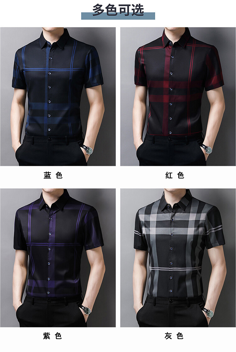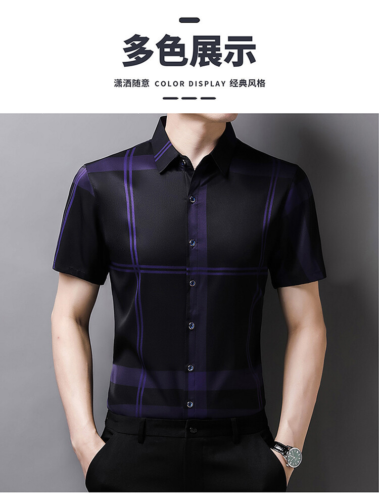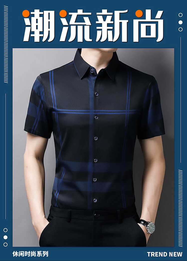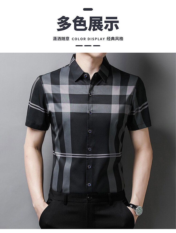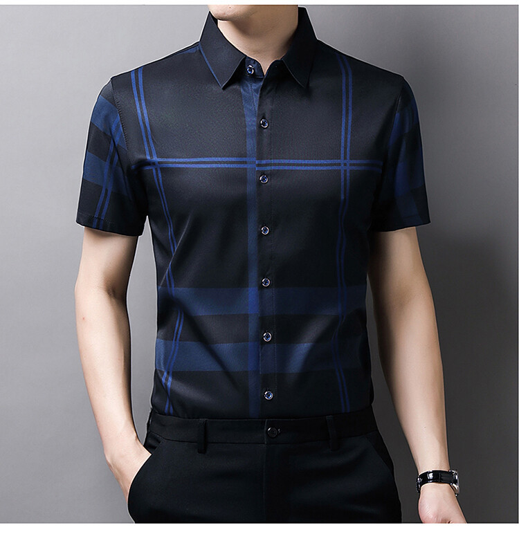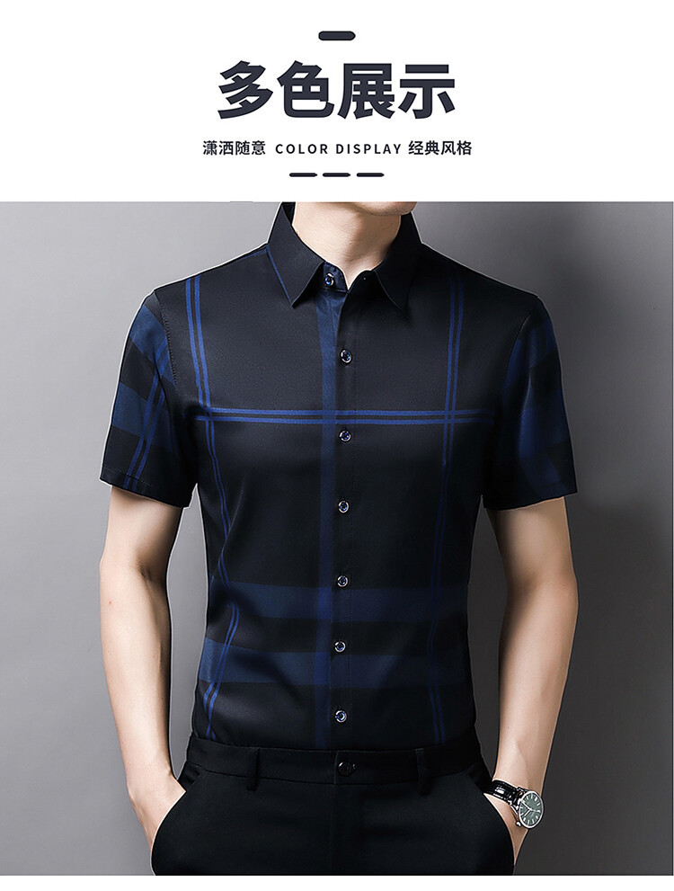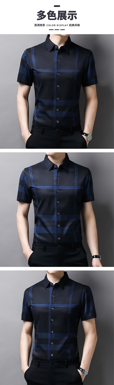 여름 슬림핏 남성 반팔 셔츠 2025 스트라이프 청년 및 중년 라펠 얇은 패션 캐주얼 셔츠 남성 트렌드스토어 가기
