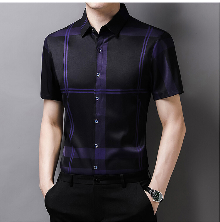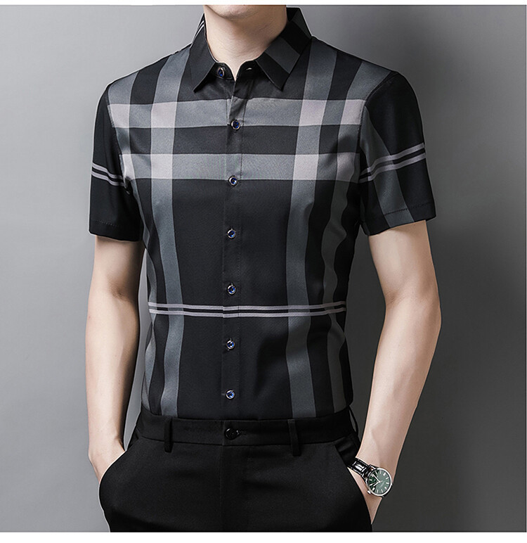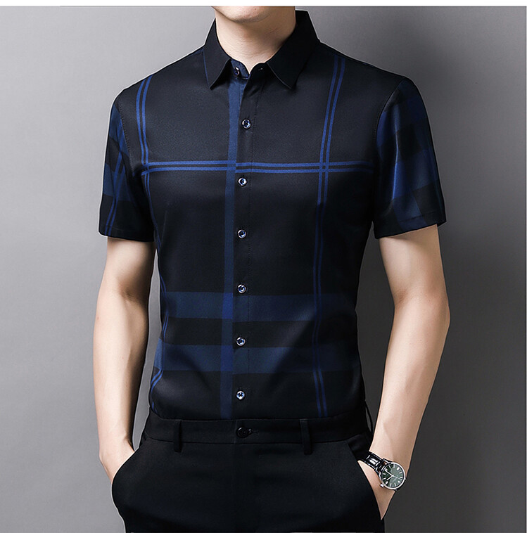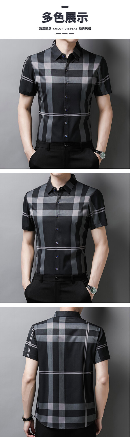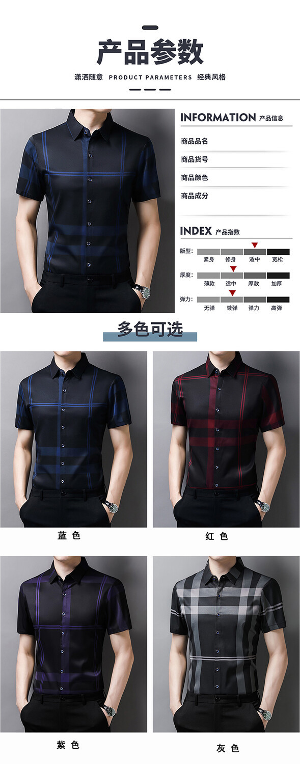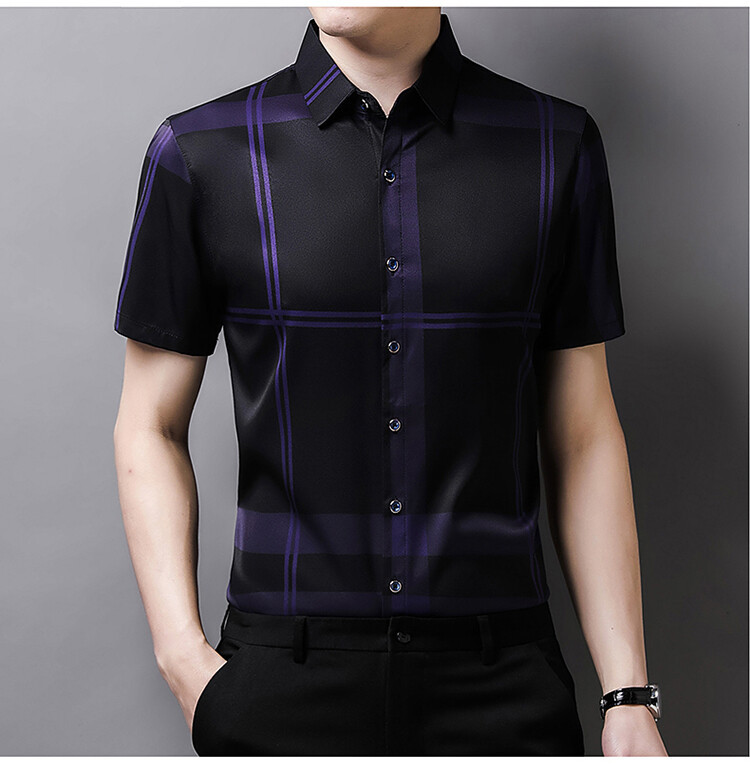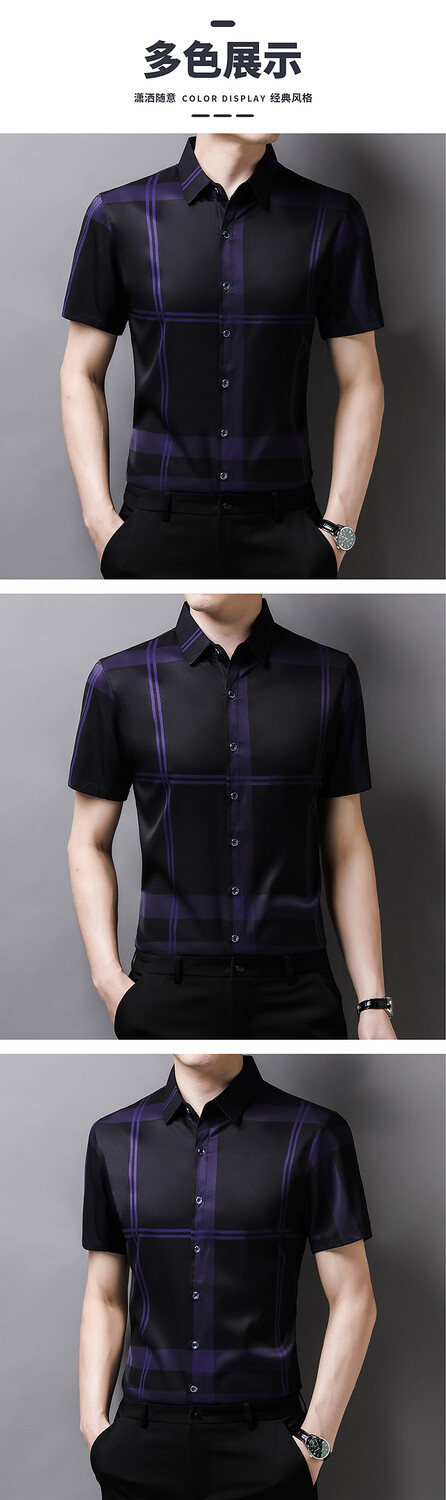 여름 슬림핏 남성 반팔 셔츠 2025 스트라이프 청년 및 중년 라펠 얇은 패션 캐주얼 셔츠 남성 트렌드스토어 가기