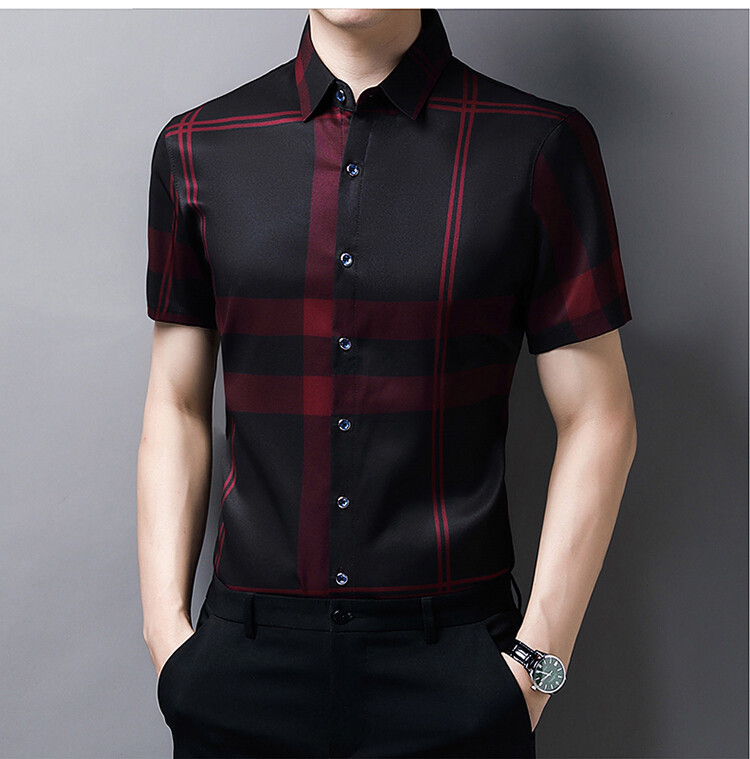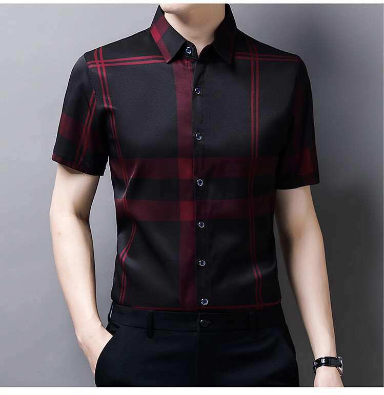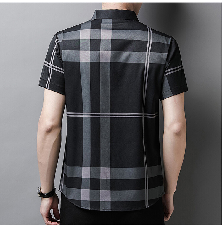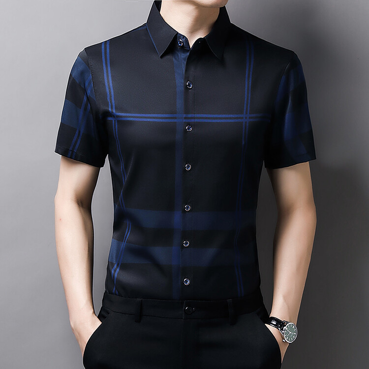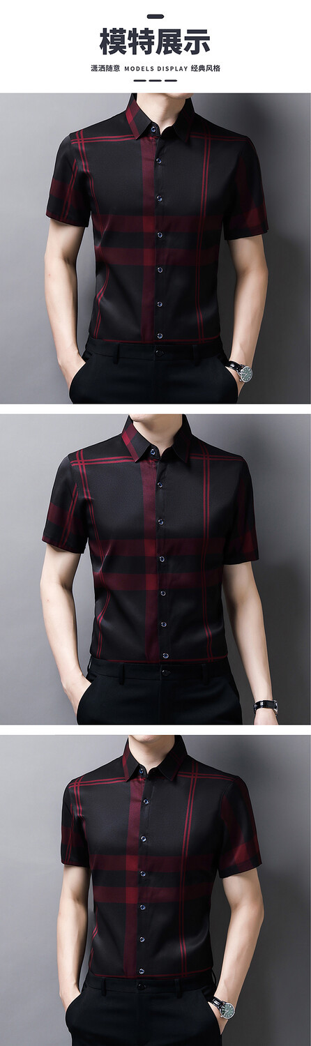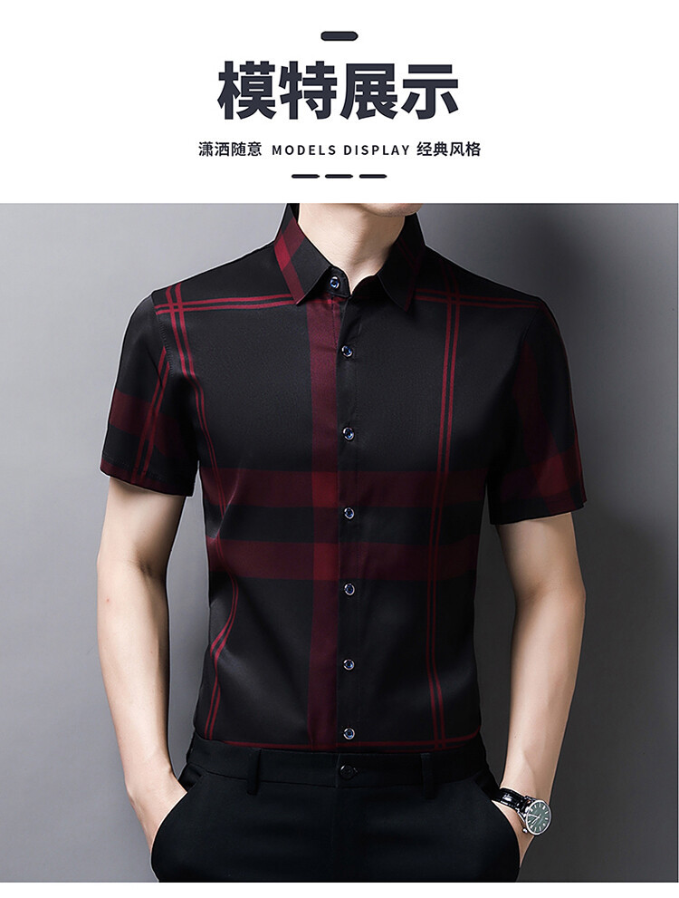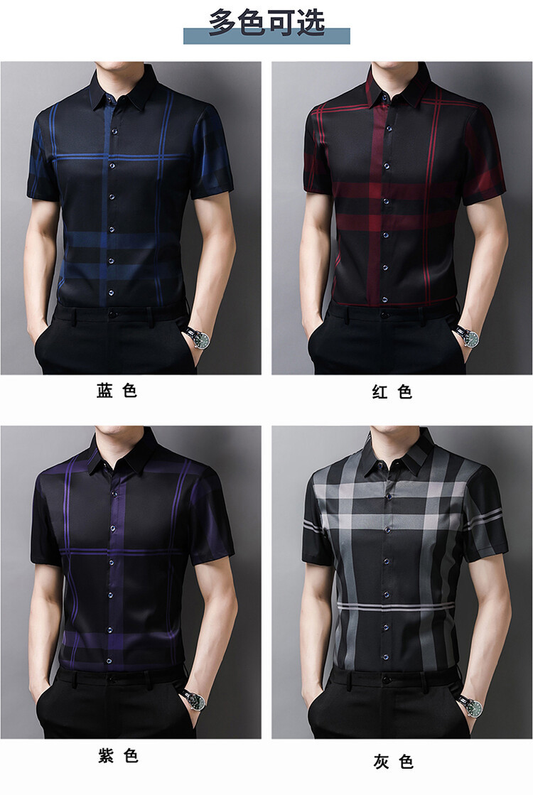 여름 슬림핏 남성 반팔 셔츠 2025 스트라이프 청년 및 중년 라펠 얇은 패션 캐주얼 셔츠 남성 트렌드스토어 가기