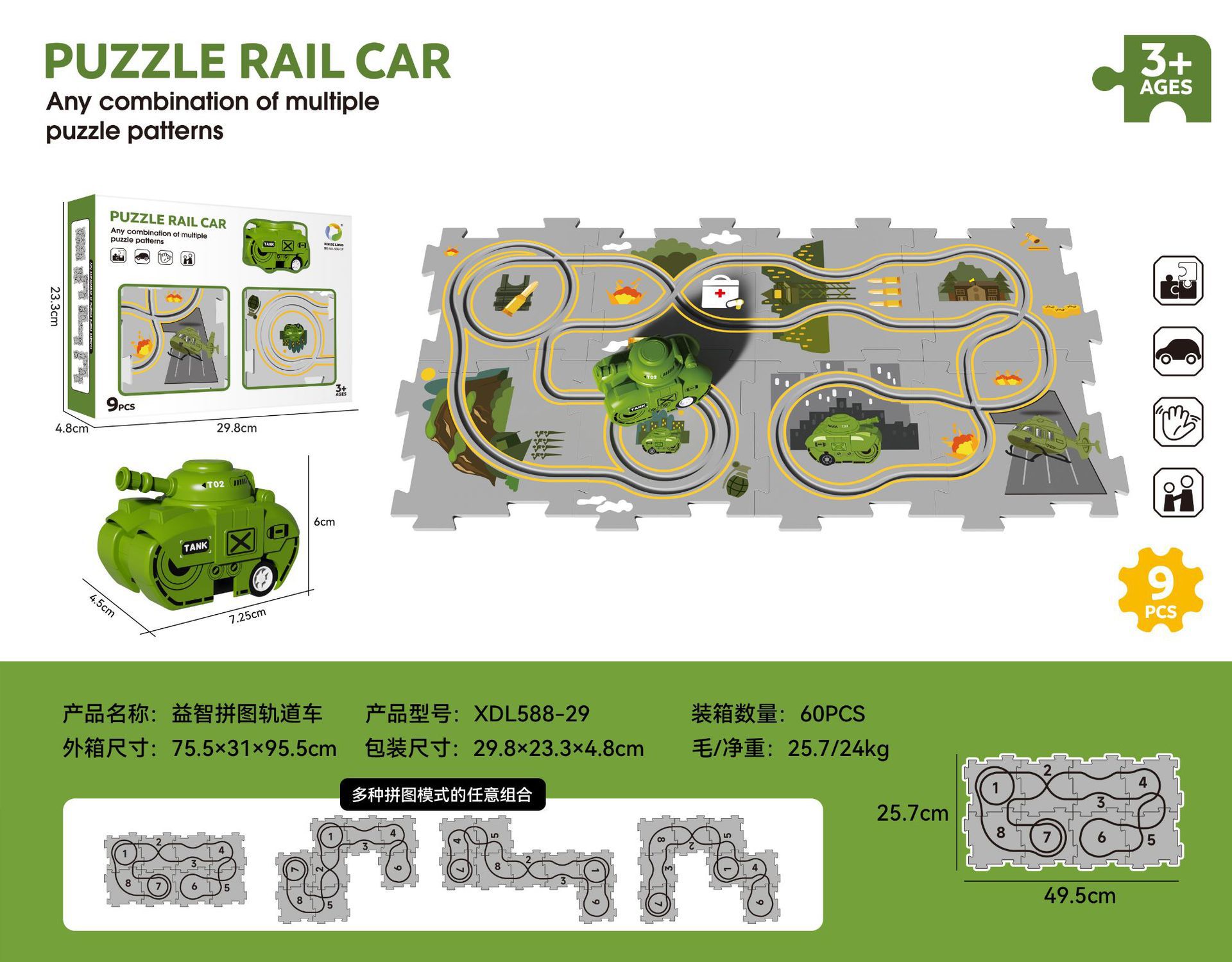 • 밀리터리 시리즈--9psc [8피스 퍼즐 + 자동차 1대] 영어 창 상자