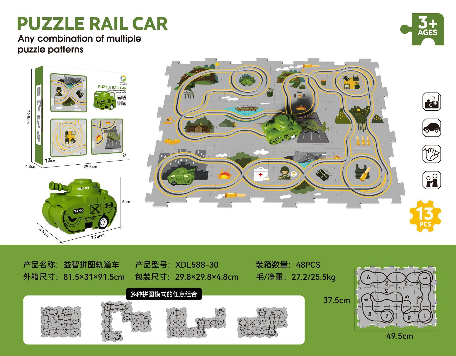 • 군사 시리즈--13psc [12피스 퍼즐 + 자동차 1대] 중국 색상 상자