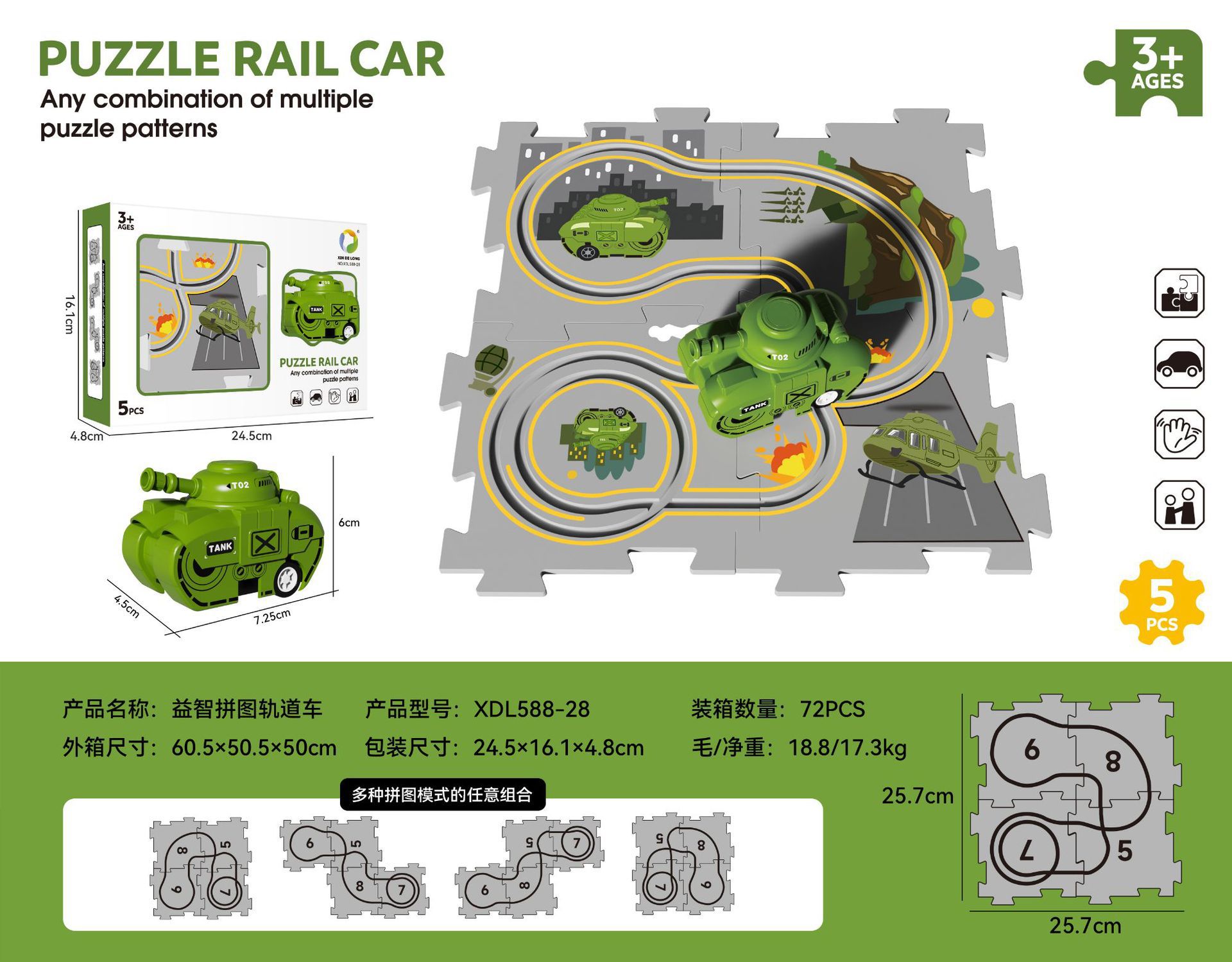 • 군사 시리즈--5psc [퍼즐 4개 + 자동차 1개] 중국 색상 상자