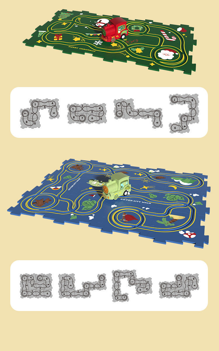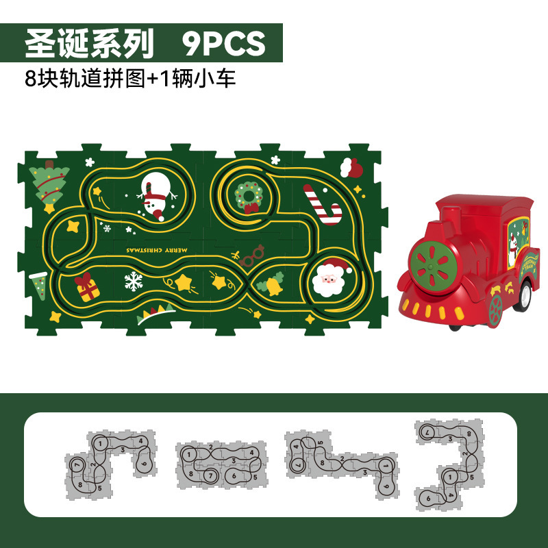국경을 넘는 어린이 교육용 DIY 퍼즐 트랙 3-6세 자동차 크리스마스 전기 자석 트랙 기차 장난감스토어 가기