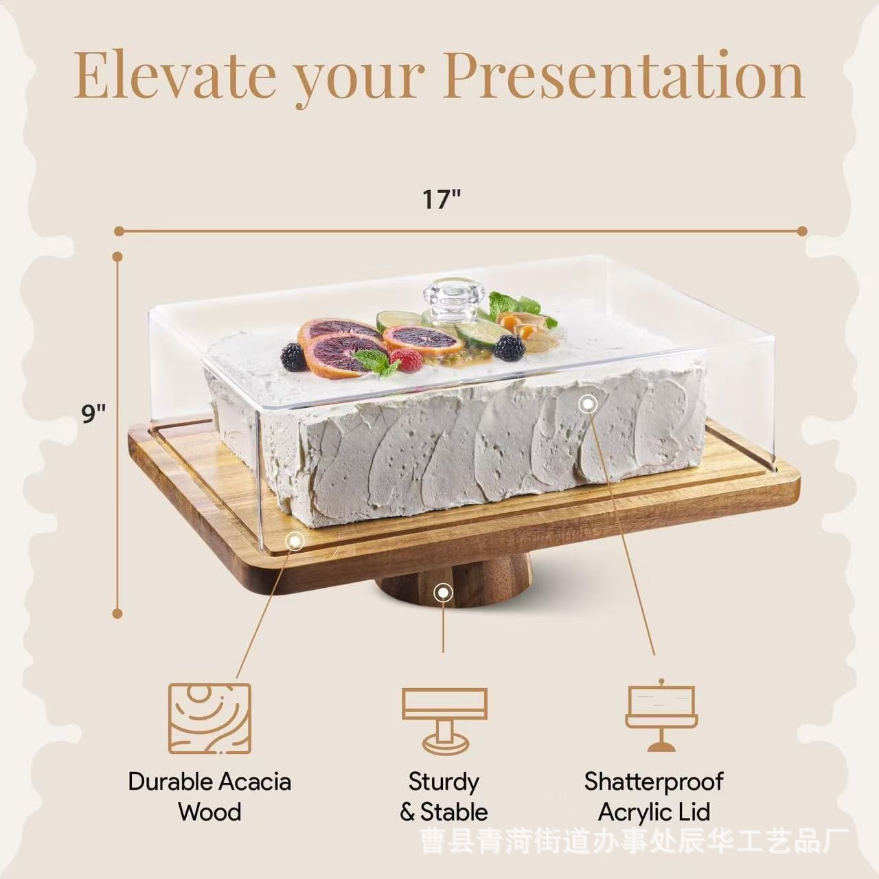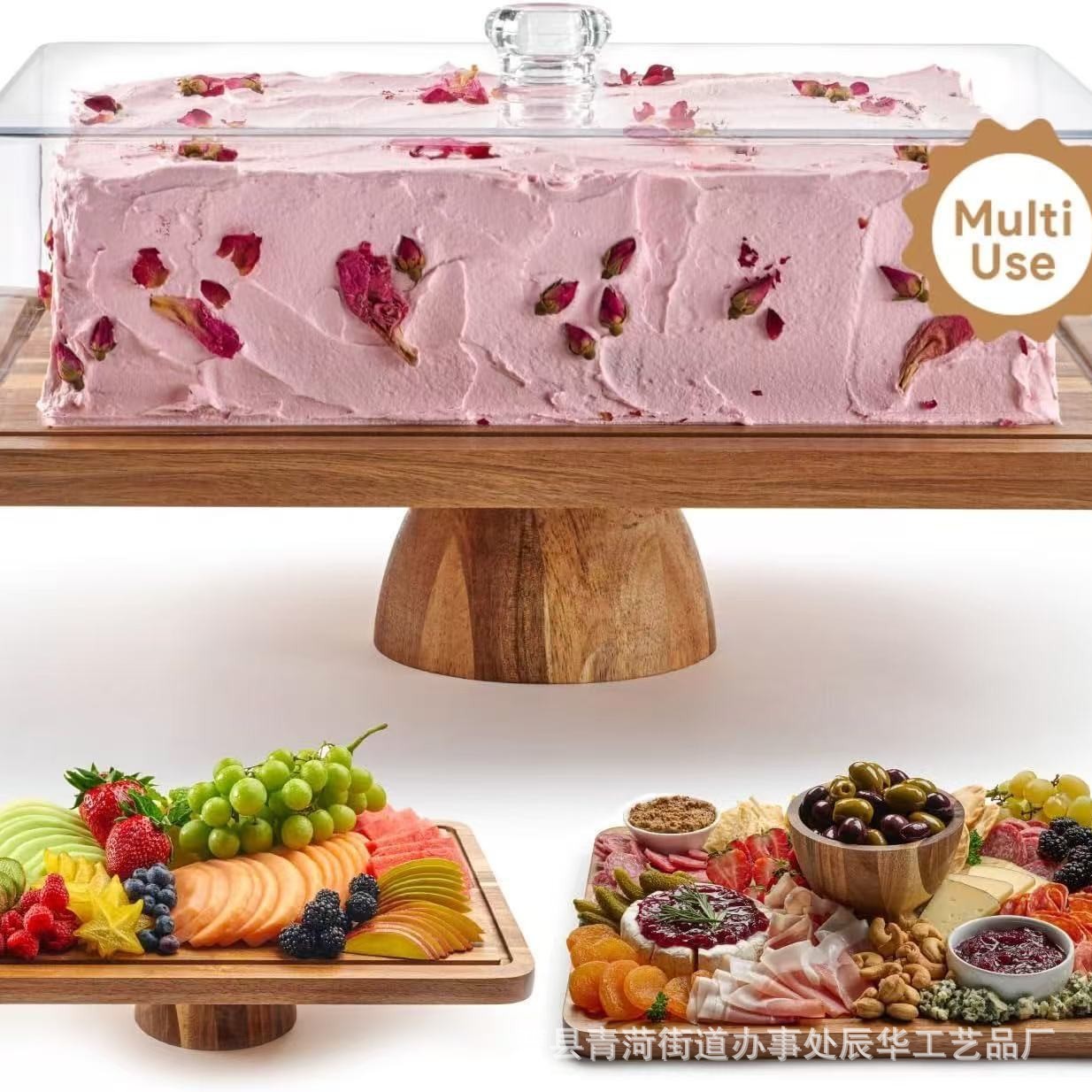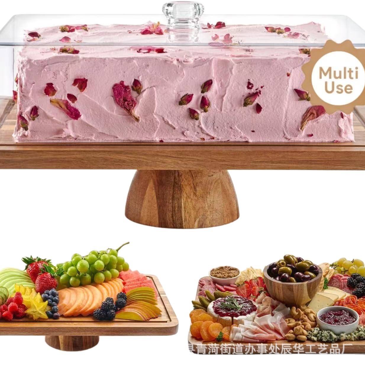나무 트레이 케이크 디저트 레트로 아카시아 나무 디저트 케이크 디스플레이 스탠드 높은 트레이 파티 장식 장식품