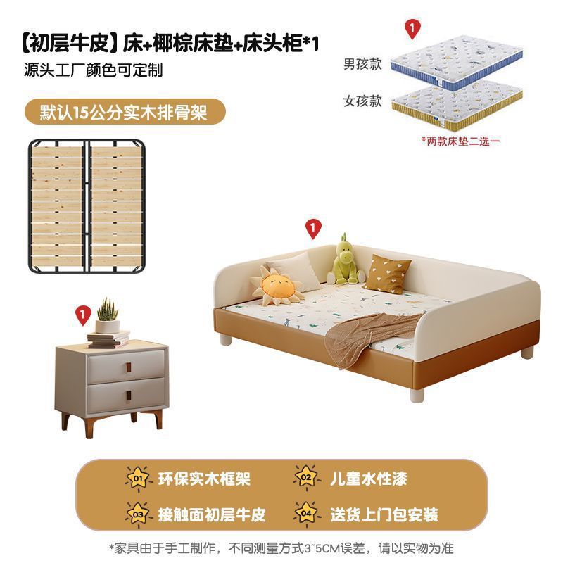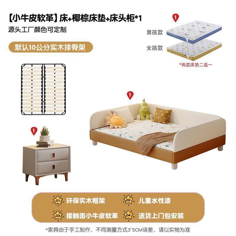 • [송아지 부드러운 가죽] 침대 + 척추 보호 코코넛 야자 매트리스 + 침대 옆 테이블 * 1