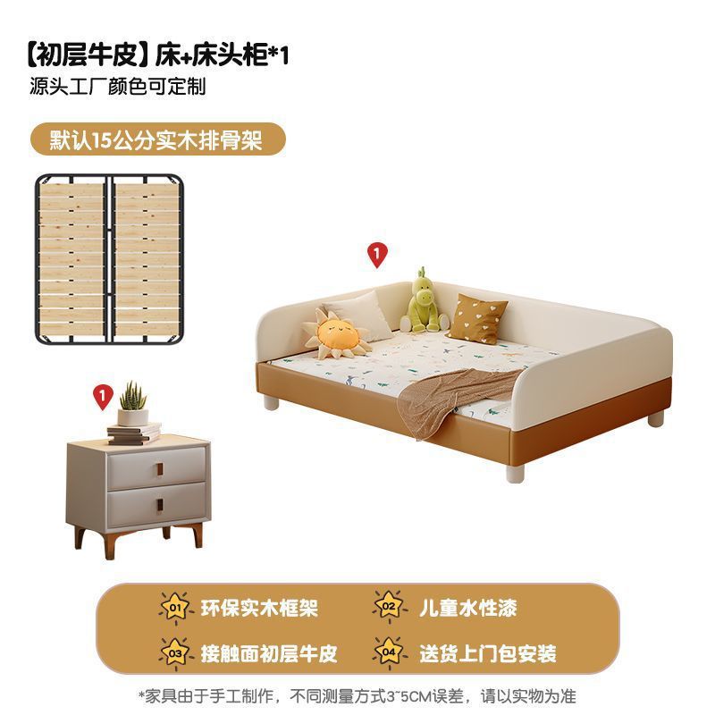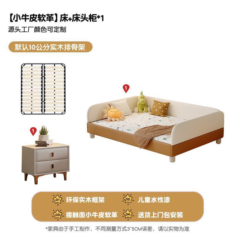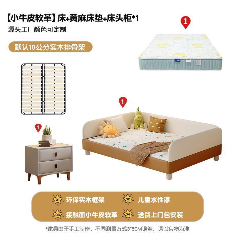 • [송아지 부드러운 가죽] 침대 + 황마 척추 보호 매트리스 + 침대 옆 탁자 * 1