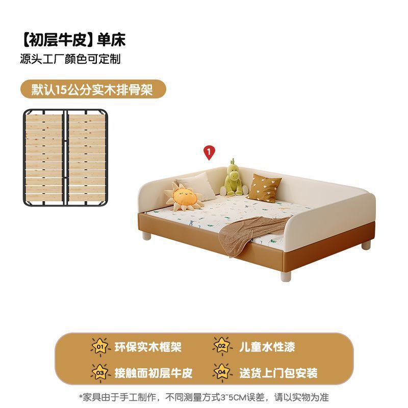 플랫폼 침대 어린이용 가죽 하이박스 수납 침대 간단하고 모던한 가드레일 포함 아기 접합 플로어 침대스토어 가기