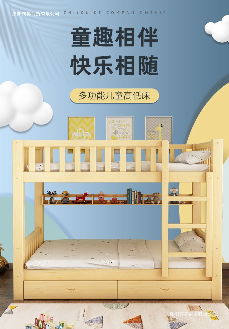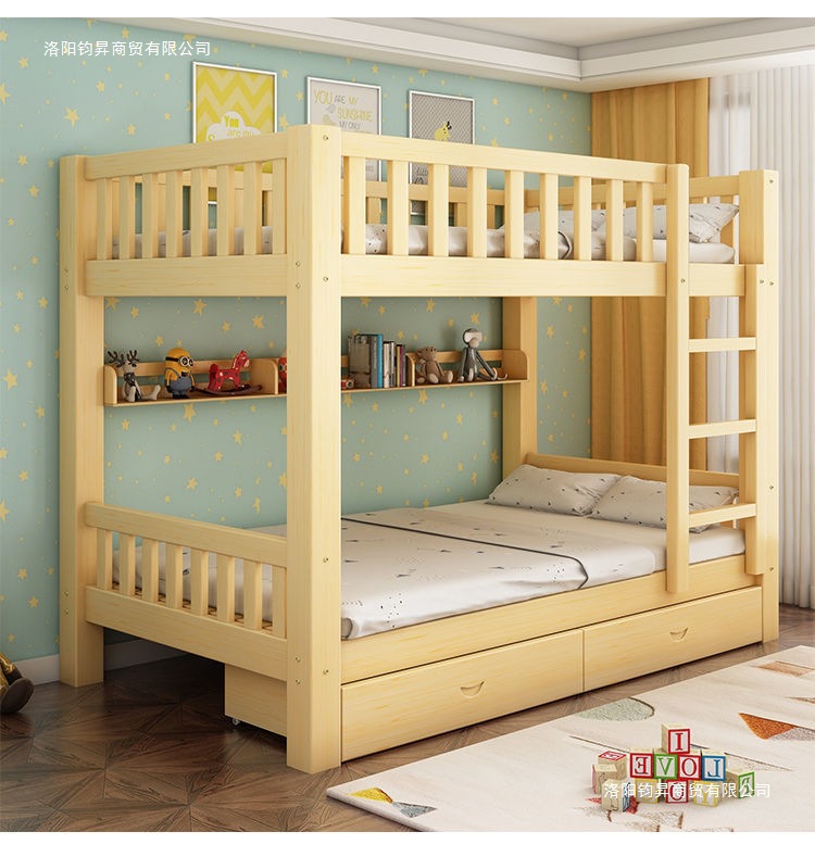 국가 표준 전체 단단한 나무 이층 침대 어린이 및 성인 나무 침대 작은 아파트 2층 이층 침대 높낮이 이층 침대스토어 가기
