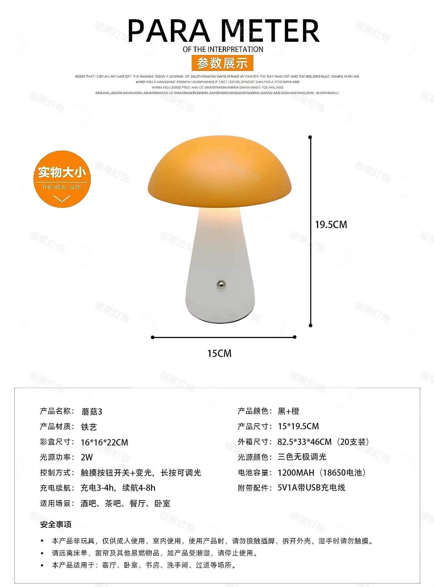 크로스보더 메탈 버섯 모양 테이블 램프 중고 USB 충전식 LED 야간 조명 터치식 침실 거실 식당 분위기 조명스토어 가기