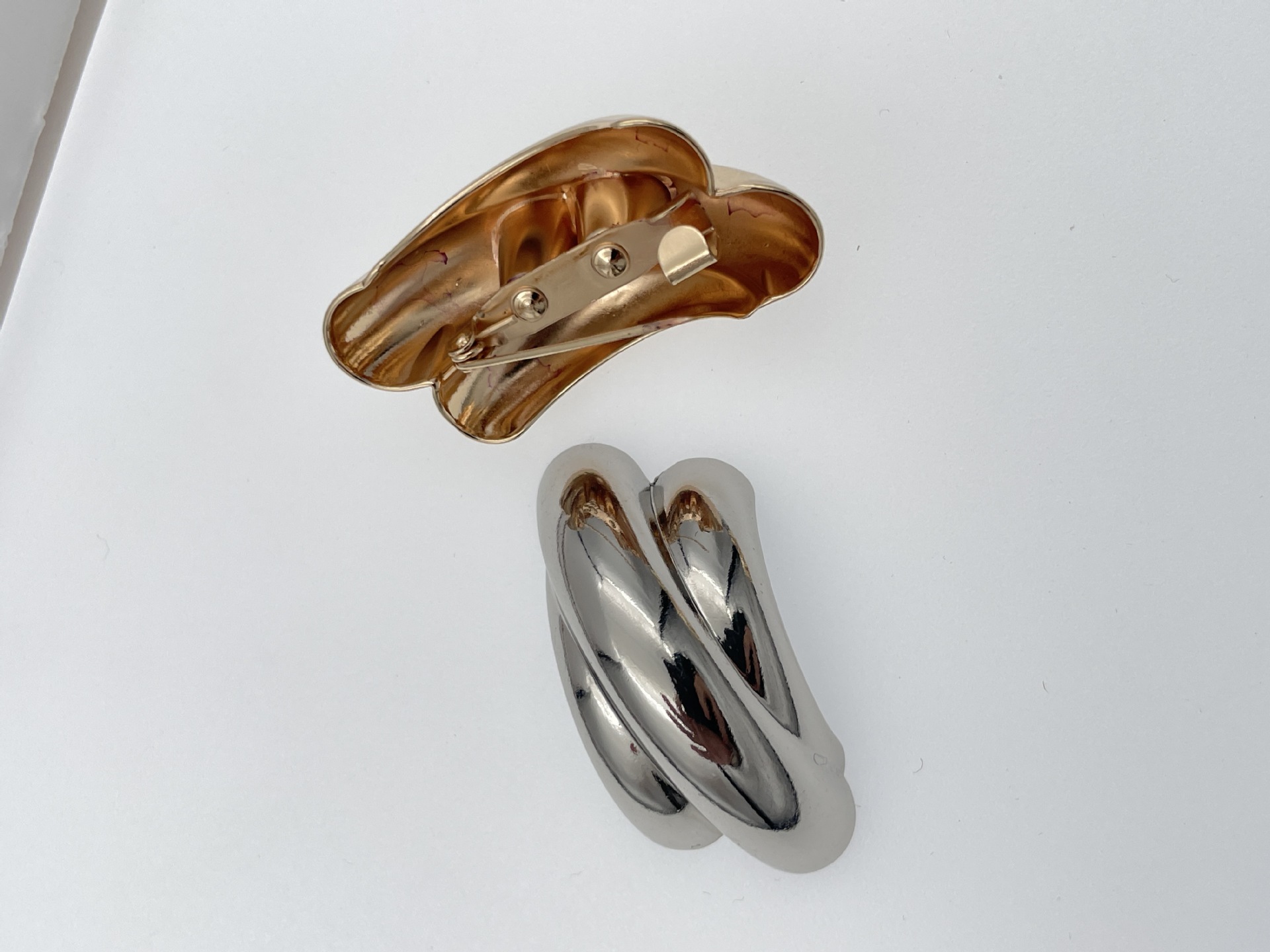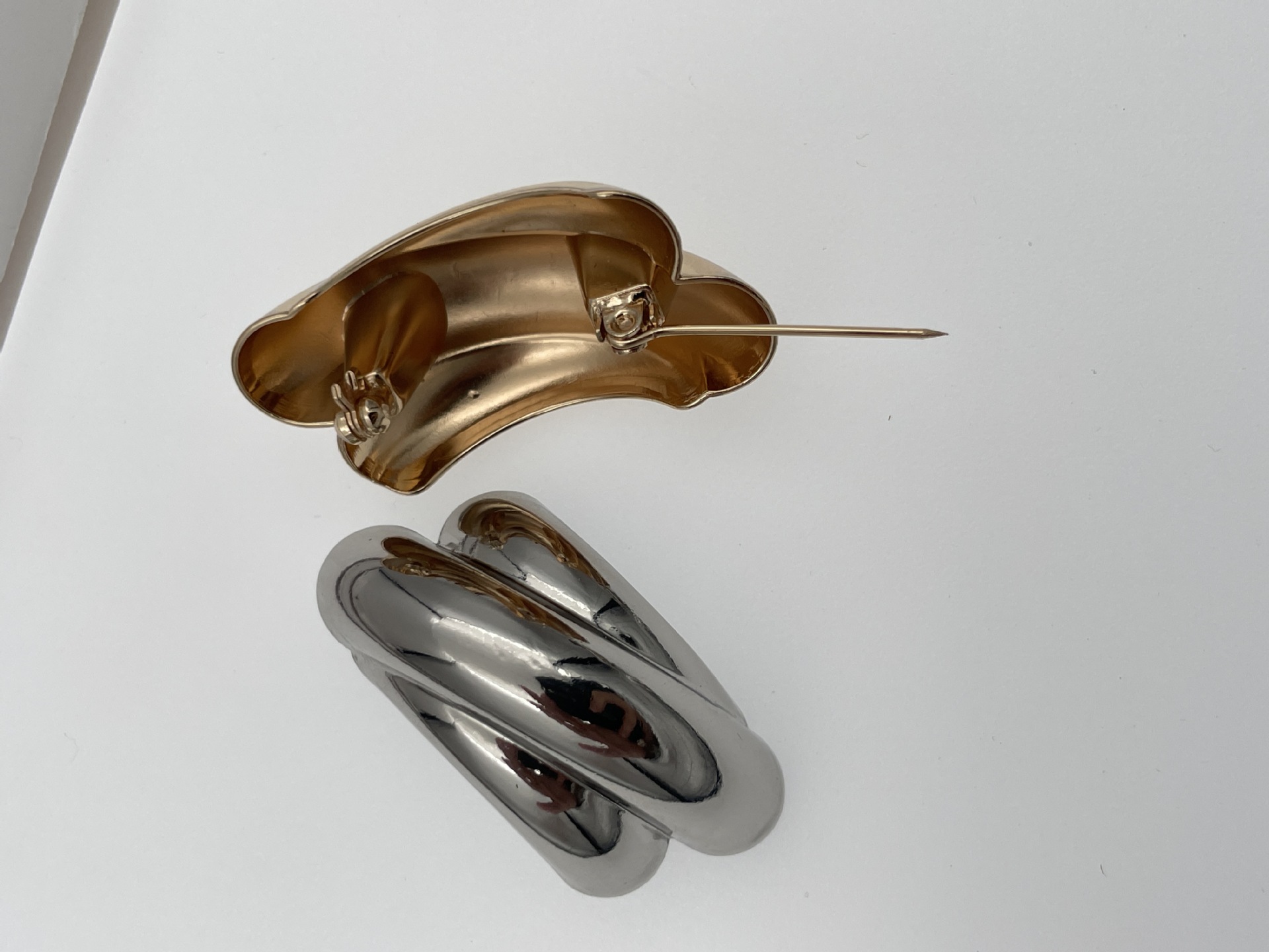 • 골드 플랫 스티치 브로치