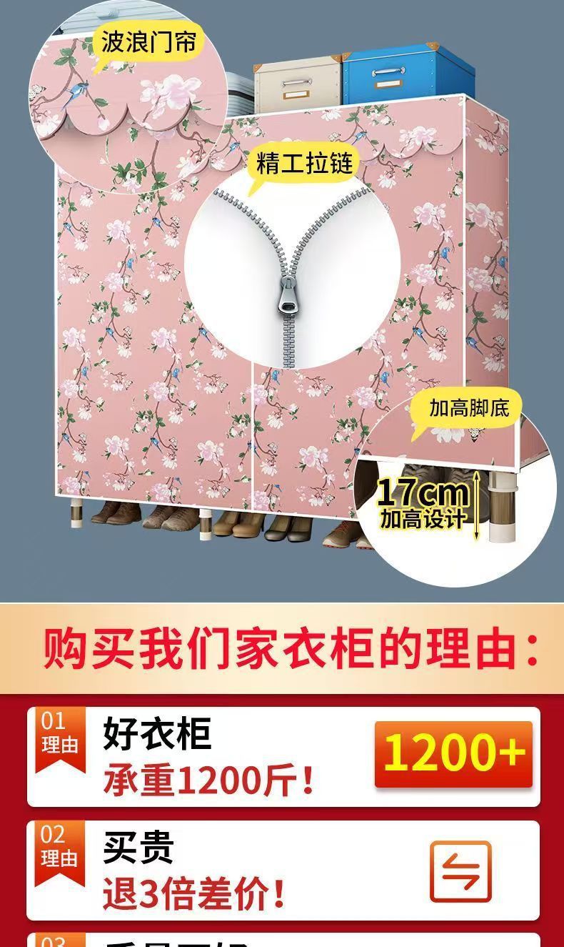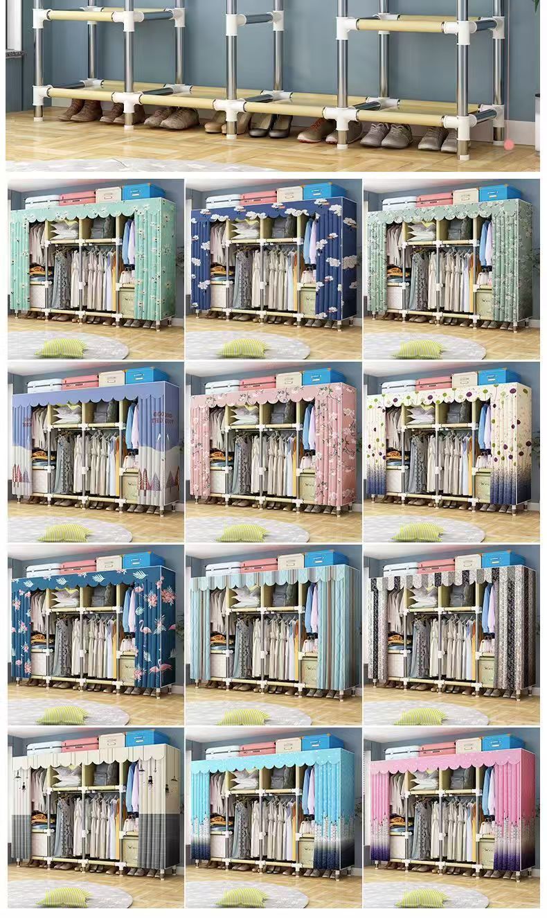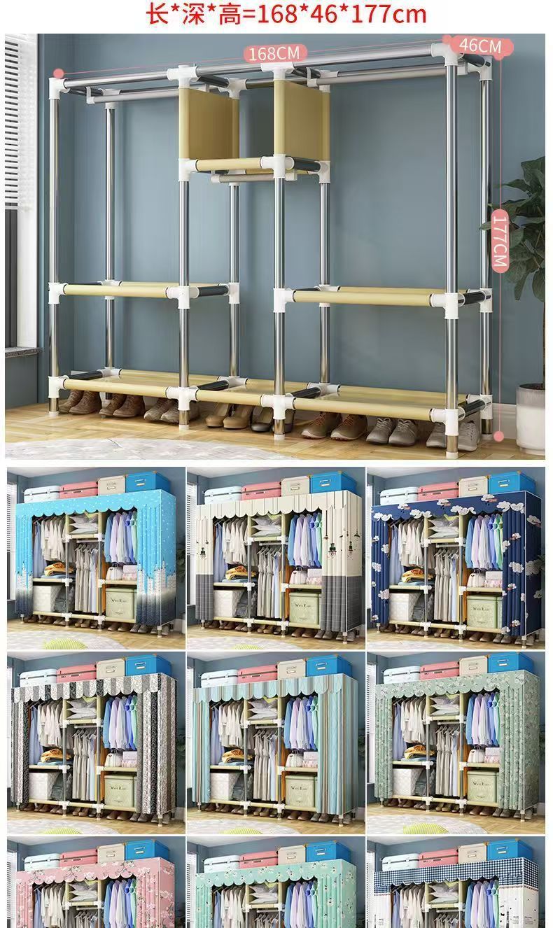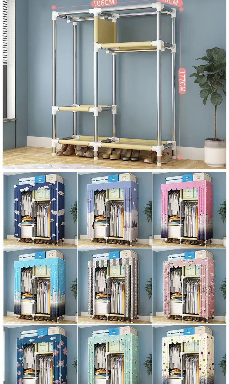 임대 주택용 간이 옷장 가정용 침실용 간이 옷장 두껍고 강화된 천 옷장 임대 주택 수납 캐비닛스토어 가기